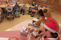 本物みたいなサンタクロースからプレゼントをもらって入居者様も嬉しそうです♡