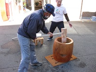 新品の臼と杵だったので前日からあく抜きをして準備!