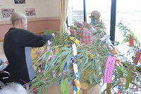 スタッフが持ってきた本物の笹に七夕の飾りつけをしました!