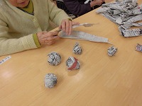 先日から新聞紙をビリビリ破いて丸めて、ボールを作っていました(^.^)