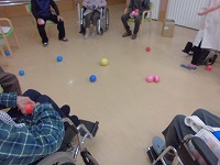 たくさん完成したのでみんなでボールを転がし、ボールに当てたりするゲームをしました。