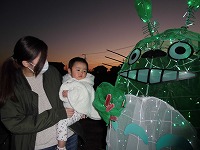 日が落ちて暗くなってから、今日は勤務が休みだったスタッフがお子様を連れてイルミネーションを見に来ました♪