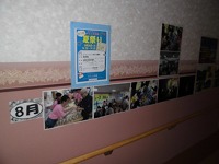 施設内のあちらこちらに今年行ったイベントやボランティアさんによるコンサートなどの写真が月ごとに貼ってあります。