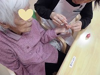 クリスマス会の前にマニキュアを塗ってオシャレする入居者様も♡