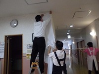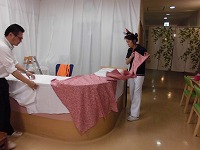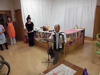 施設内を飾り付けていつもと違う雰囲気です。アコーディオン奏者の方がボランティアで来て頂き、さらにムーディな雰囲気に♡