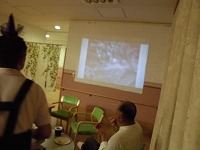 第2部は部屋の照明を少し暗くし、プロジェクターで昭和の映像をスクリーンに映しました。
