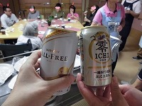 フルーツ・サンドイッチ・から揚げ、飲み物もジュース・ノンアルコールビールを飲みながらキャンドルライトで話が弾みます(#^.^#)