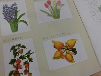 よく見るとお花のぬり絵で、細かい花びらに色を付けているところでした。
