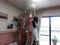 スタッフが家から本物の竹を持ってきてくれて、色々な飾り付けをします。