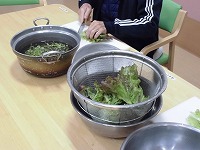収穫したサニーレタスを洗って、さっそく調理しました♪