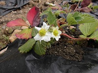 先日じゃがいもとにんじんを植えて、いちごはカワイイ花が咲き始めました♡