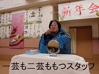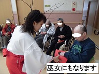 その後は本格的な巫女に扮したスタッフからおみくじを引いてもらったり、振付バッチリで「UFO」を披露したり、二人羽織で笑いをとったりと、スタッフ大活躍です!