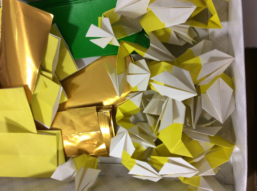 今せっせと飾り作りを皆様に