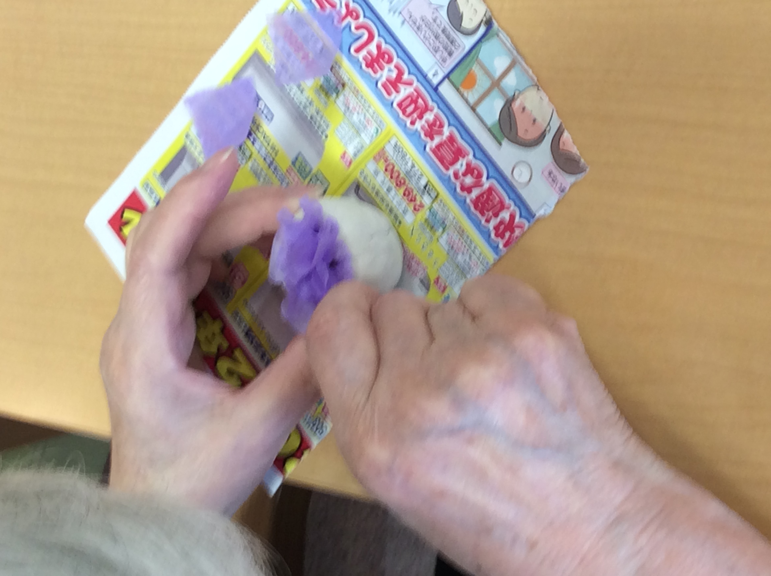 五月に入ったばかりですが、一足早く本日のレクは、「紫陽花の花」を作りました(#^^#)