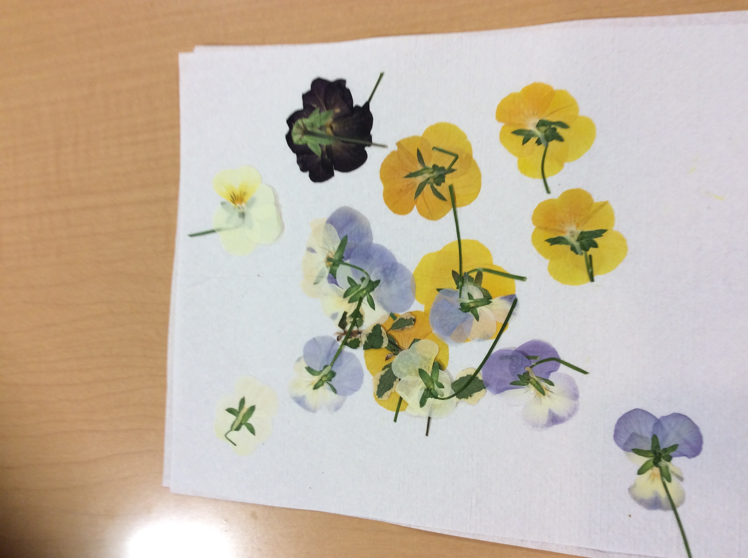 花を摘むところから始め、並べて押さえて乾燥させて(#^^#)
