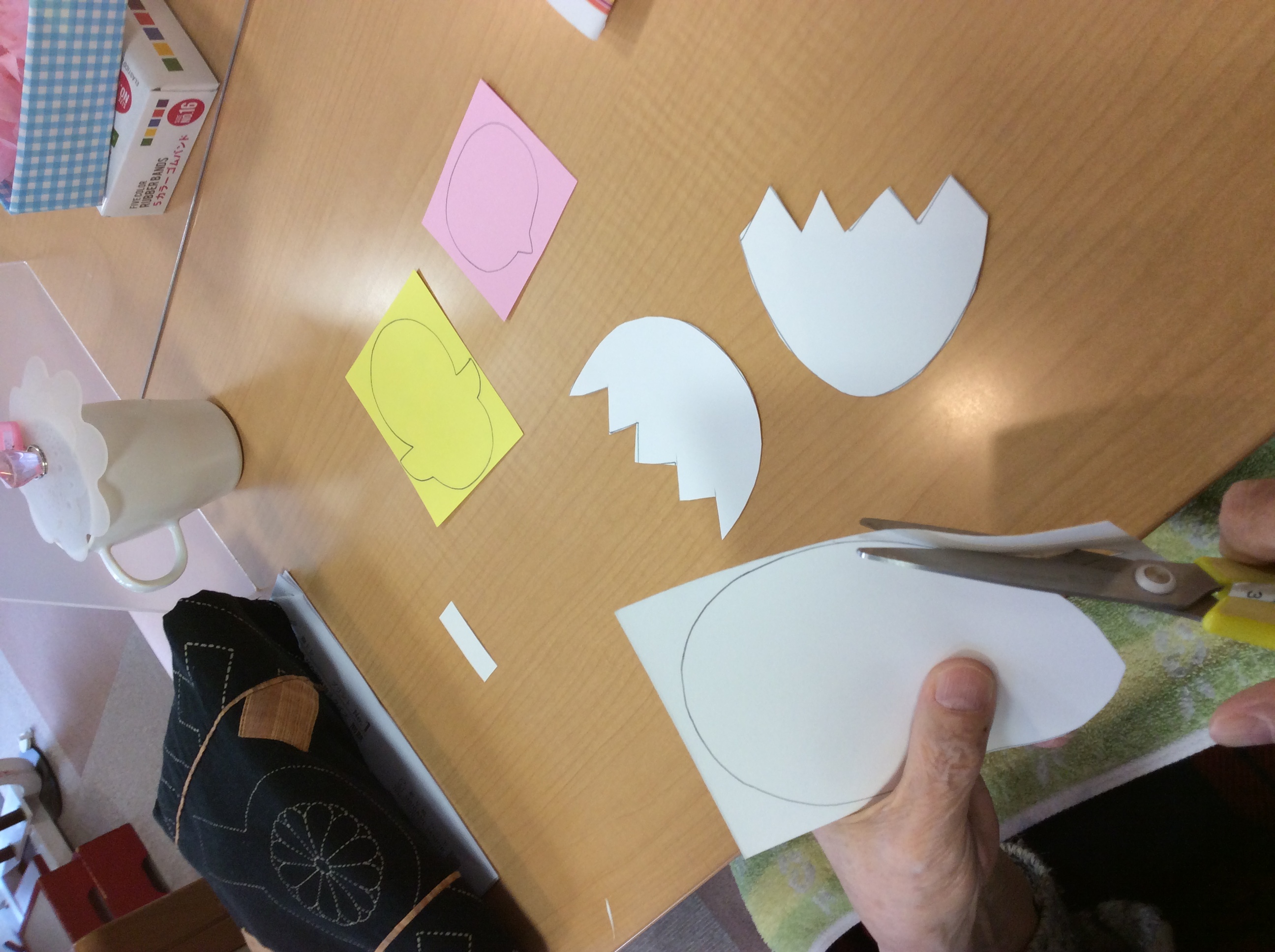 卵がパックリ割れると、中からひよ子ちゃんが顔を出します(*^^*)