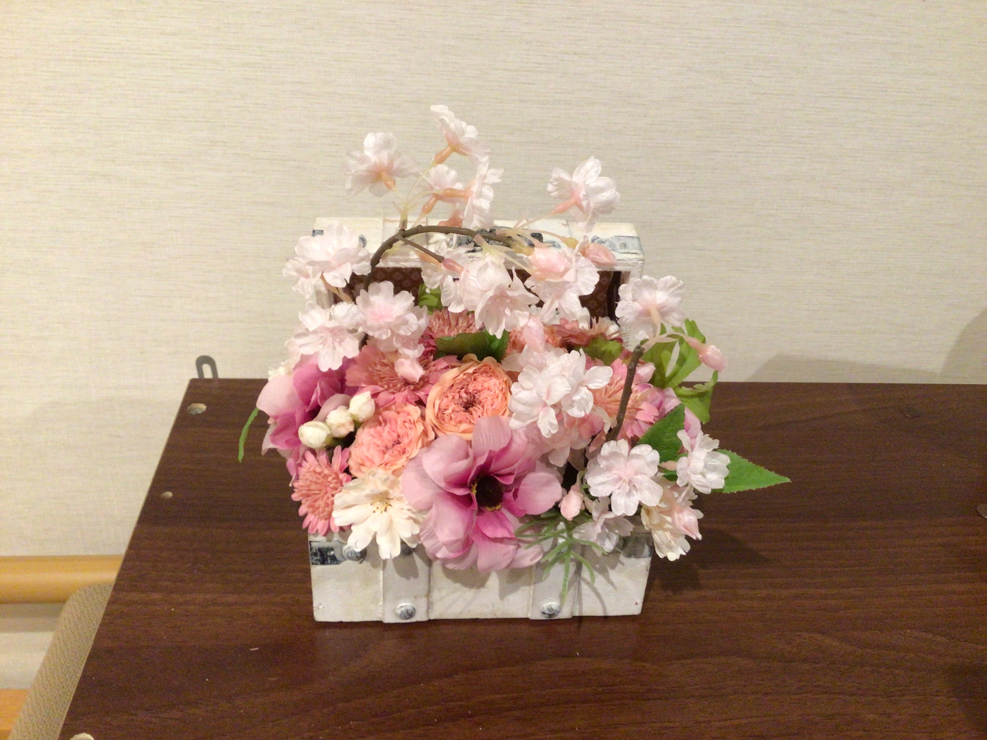 額縁の絵も桜になり、アレンジフラワーも桜になり、そして玄関は