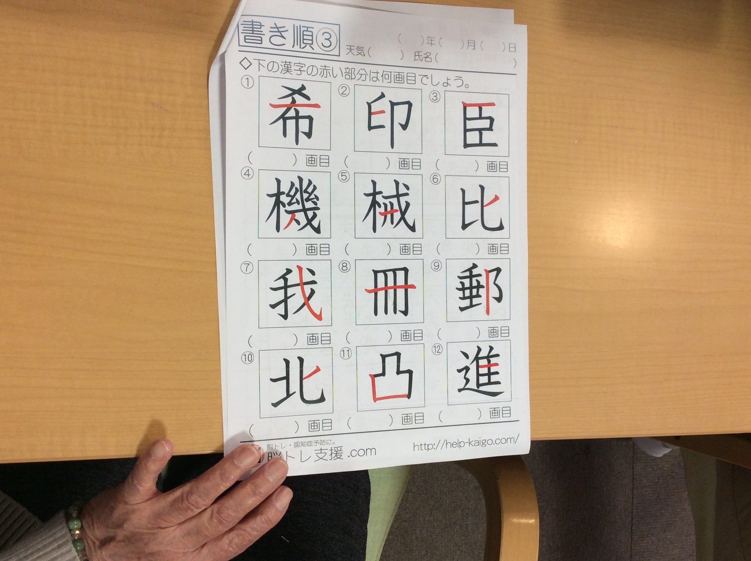 数枚のプリントの中に、漢字の書き順を答えるというのがありました。