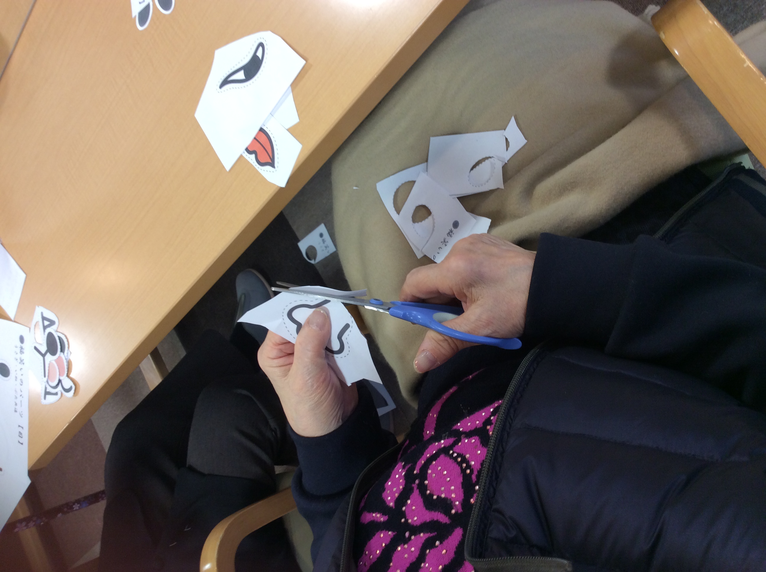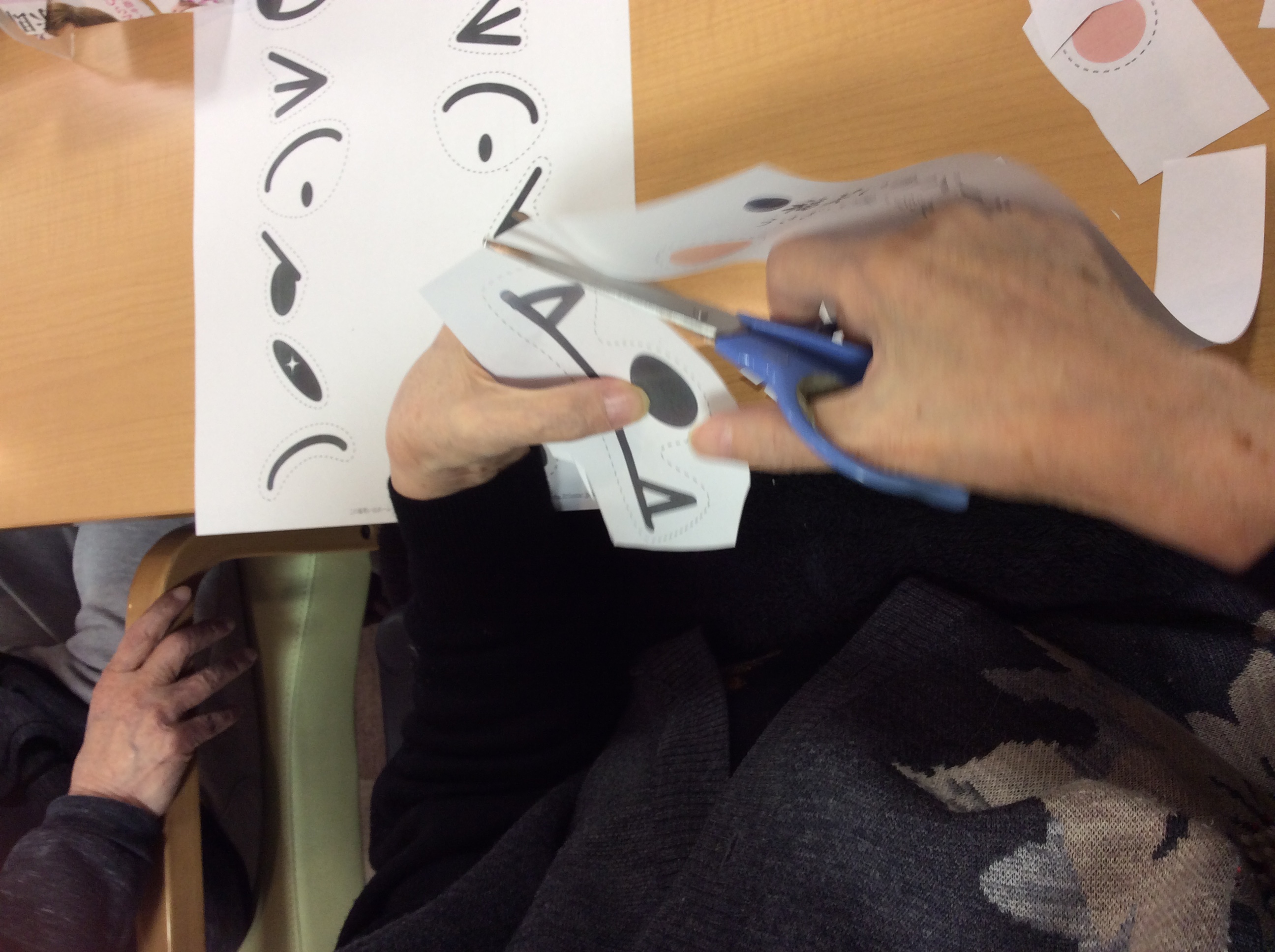 皆様で福笑いの製作から取り組んでもらいました