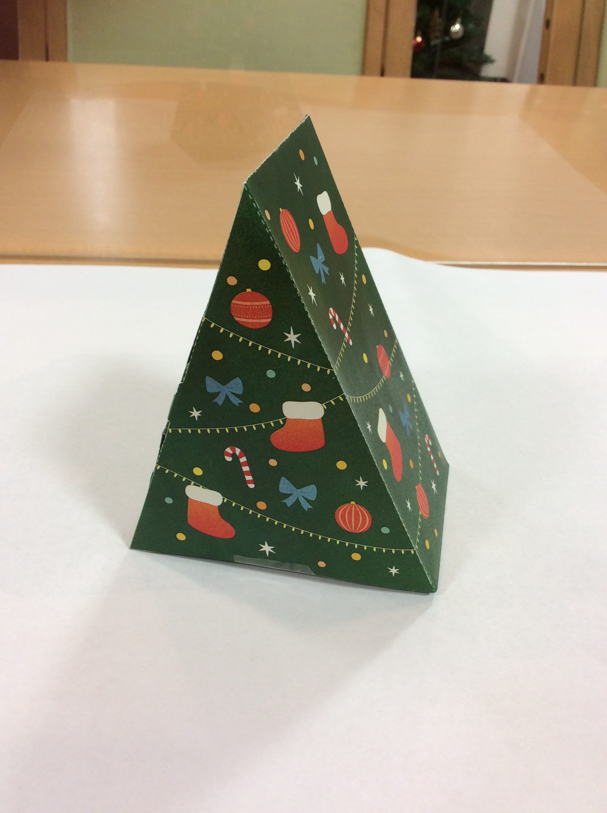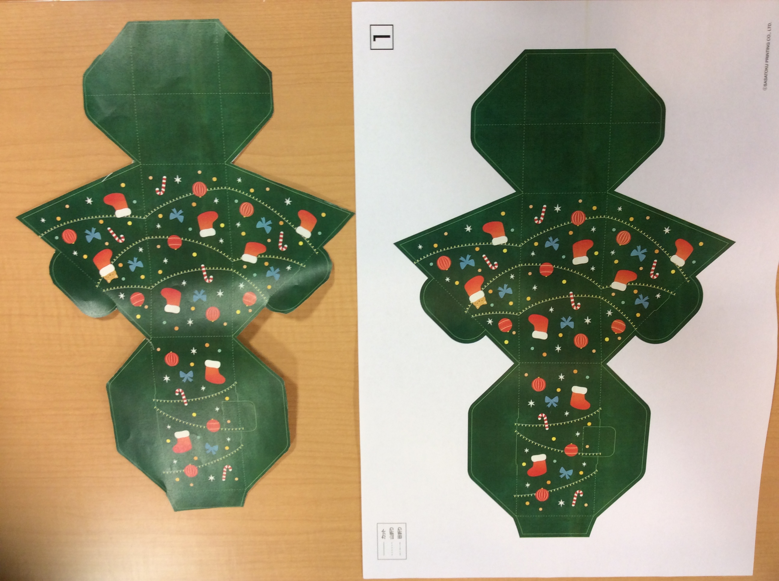 切り取り線通りハサミで切って、のり付けして組み立てるとツリーになります。