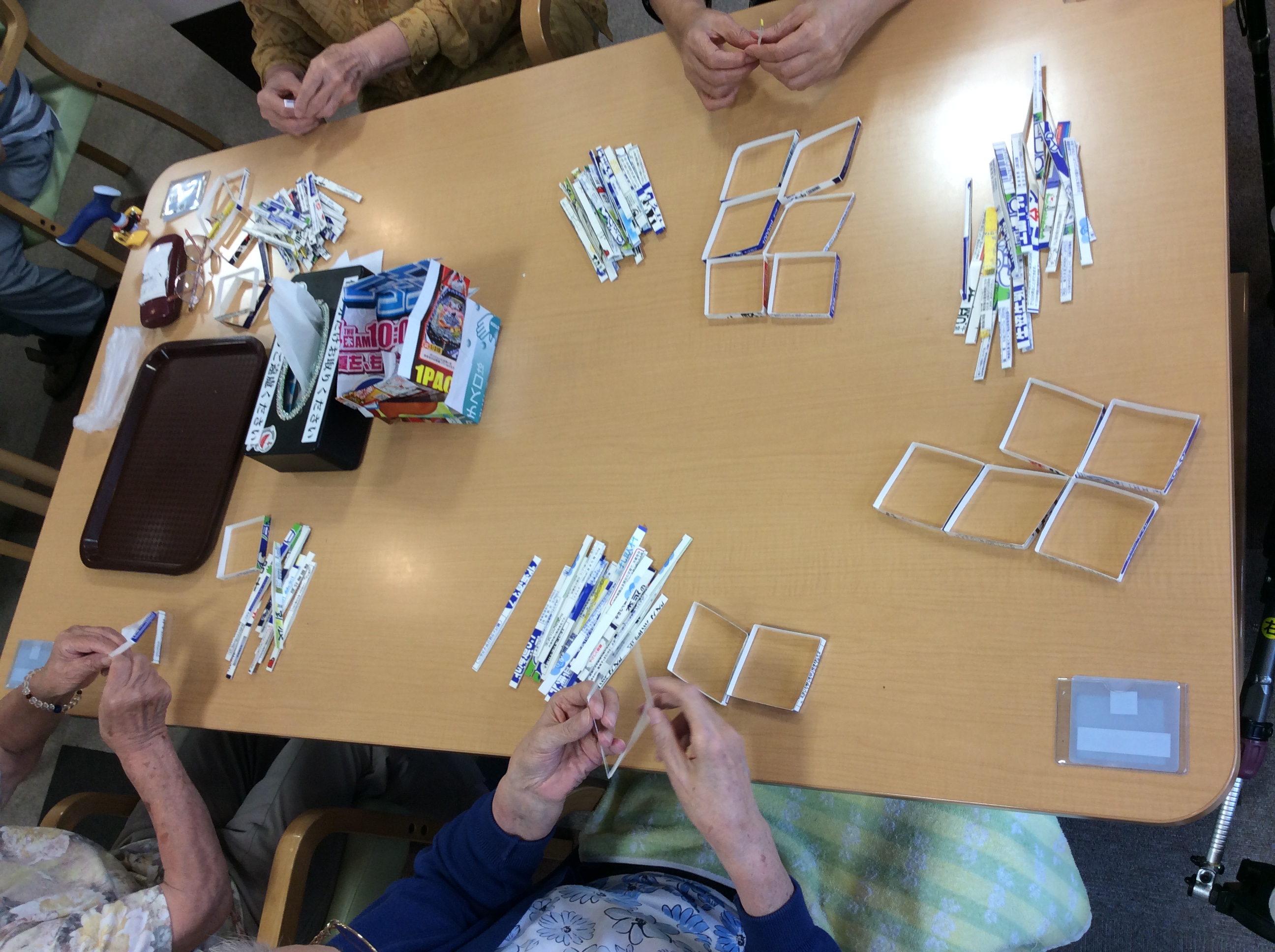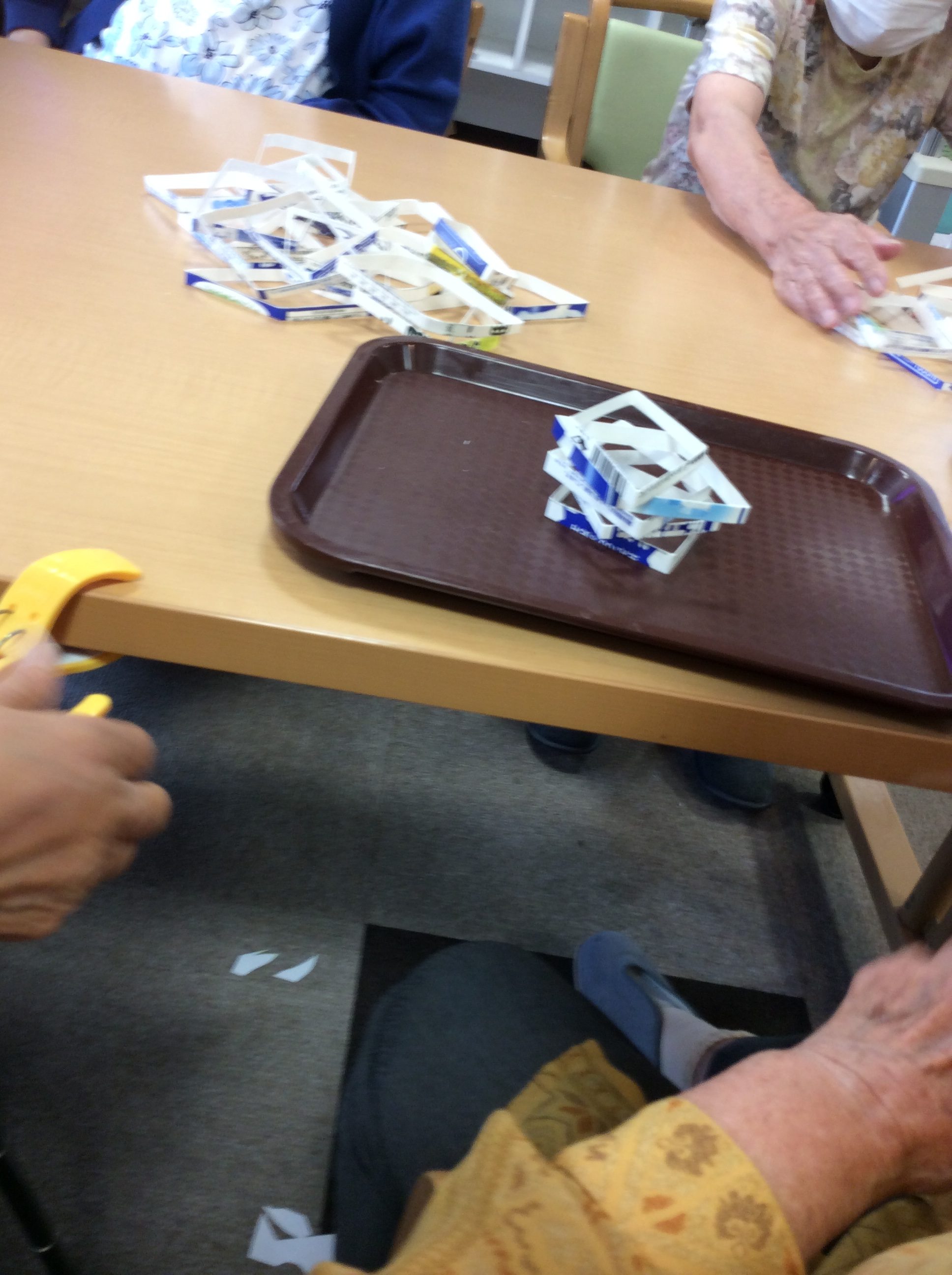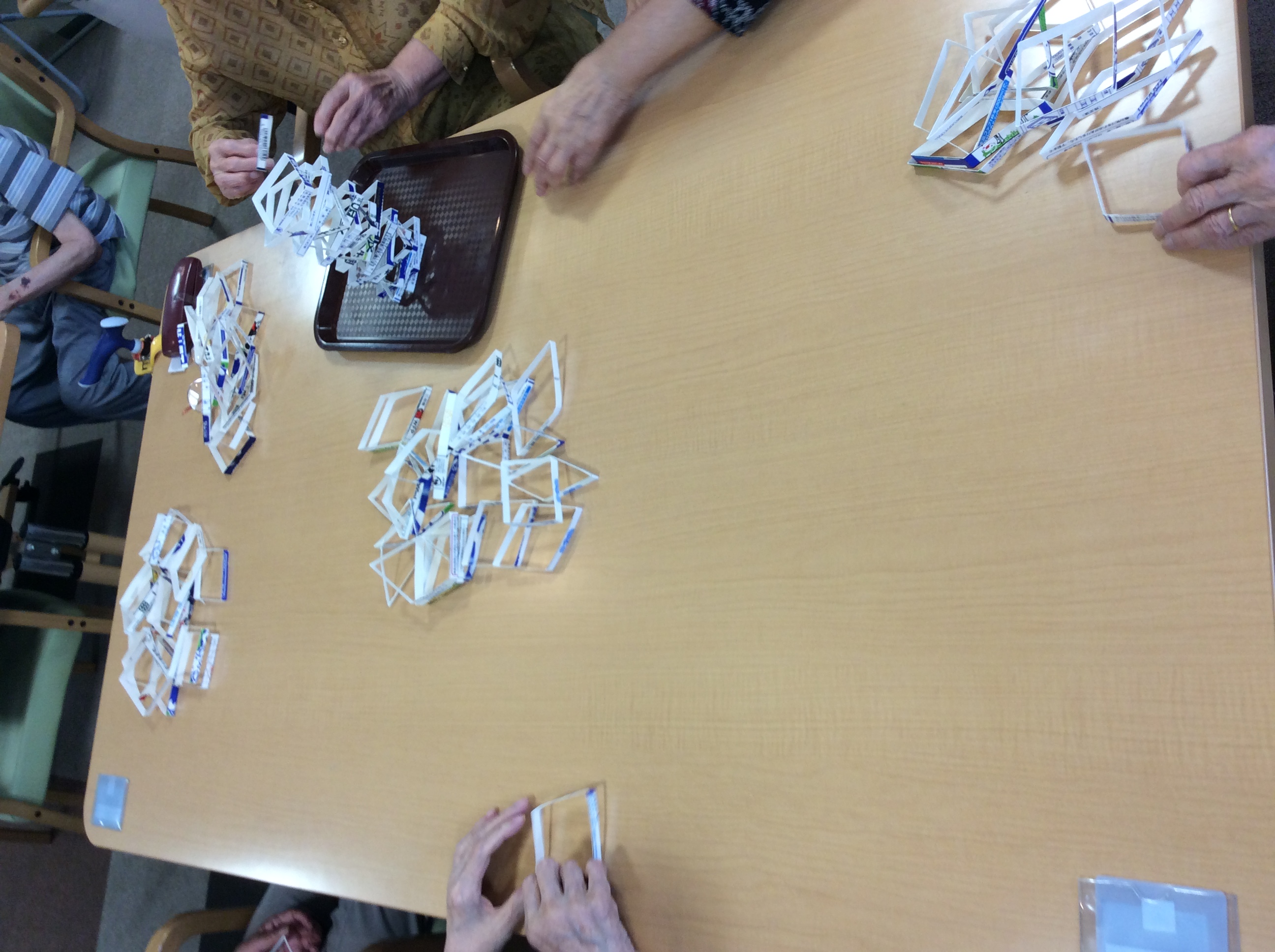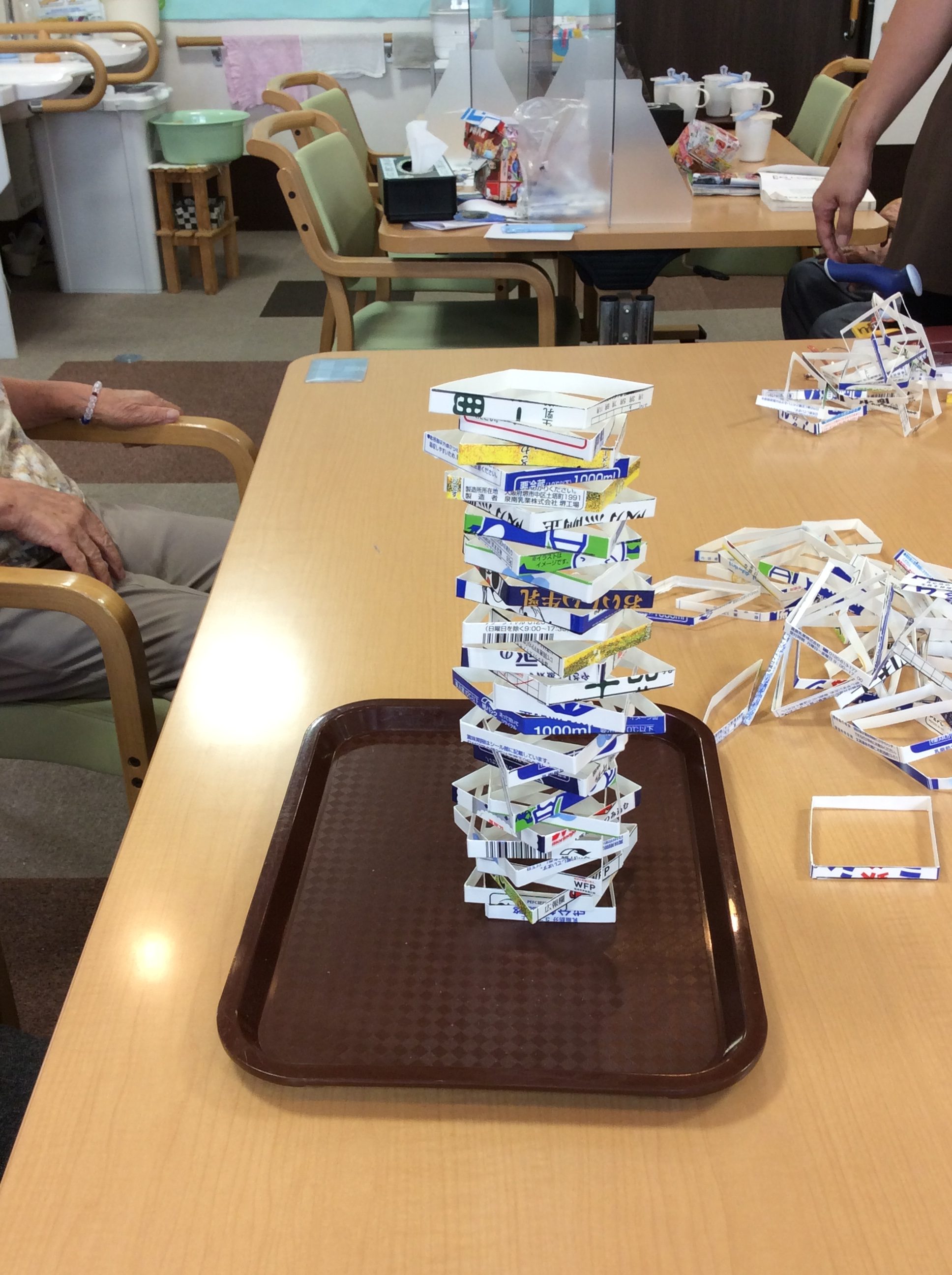 これは、牛乳パックを細く切ったものを積み上げていくゲームです。