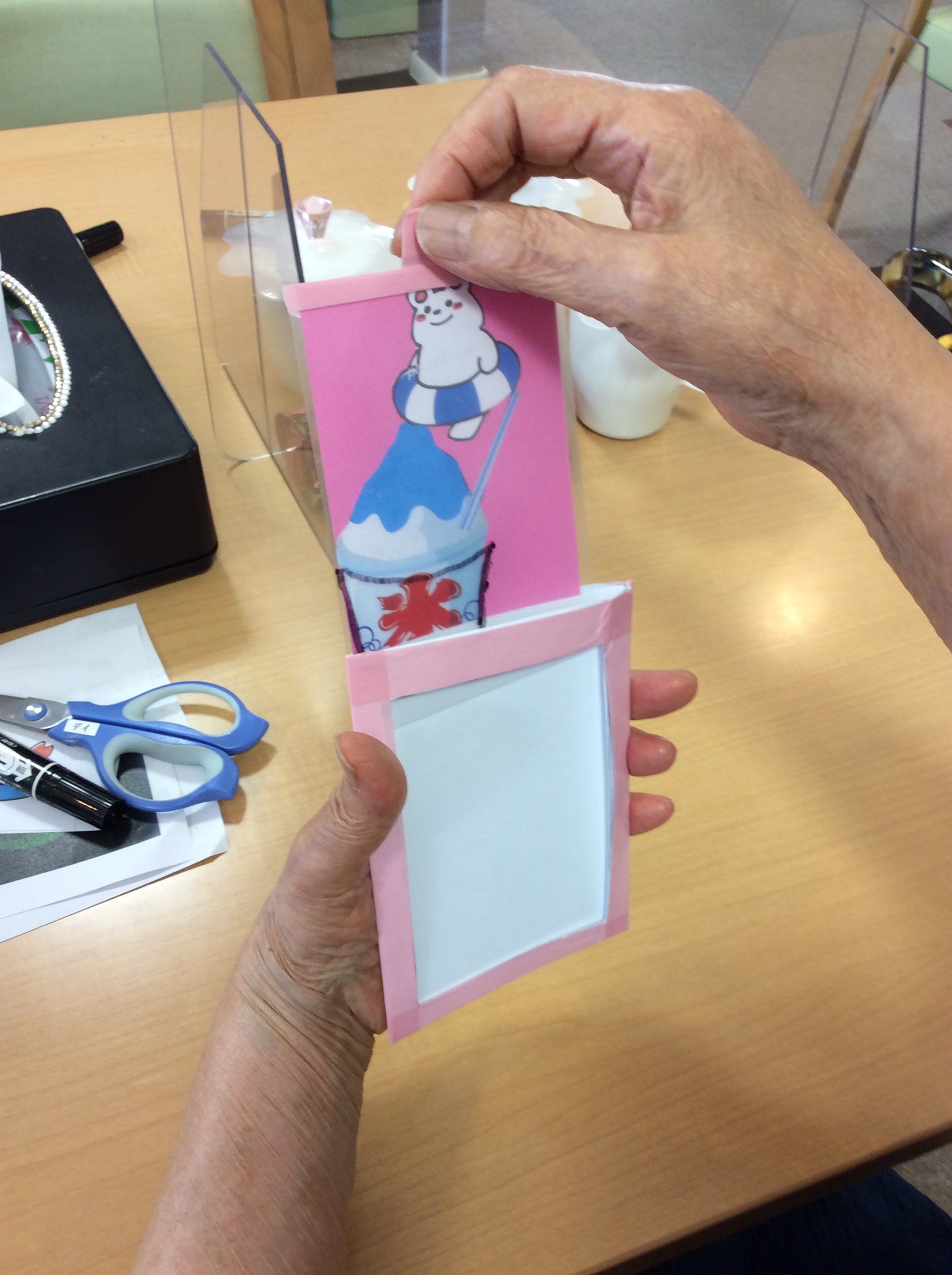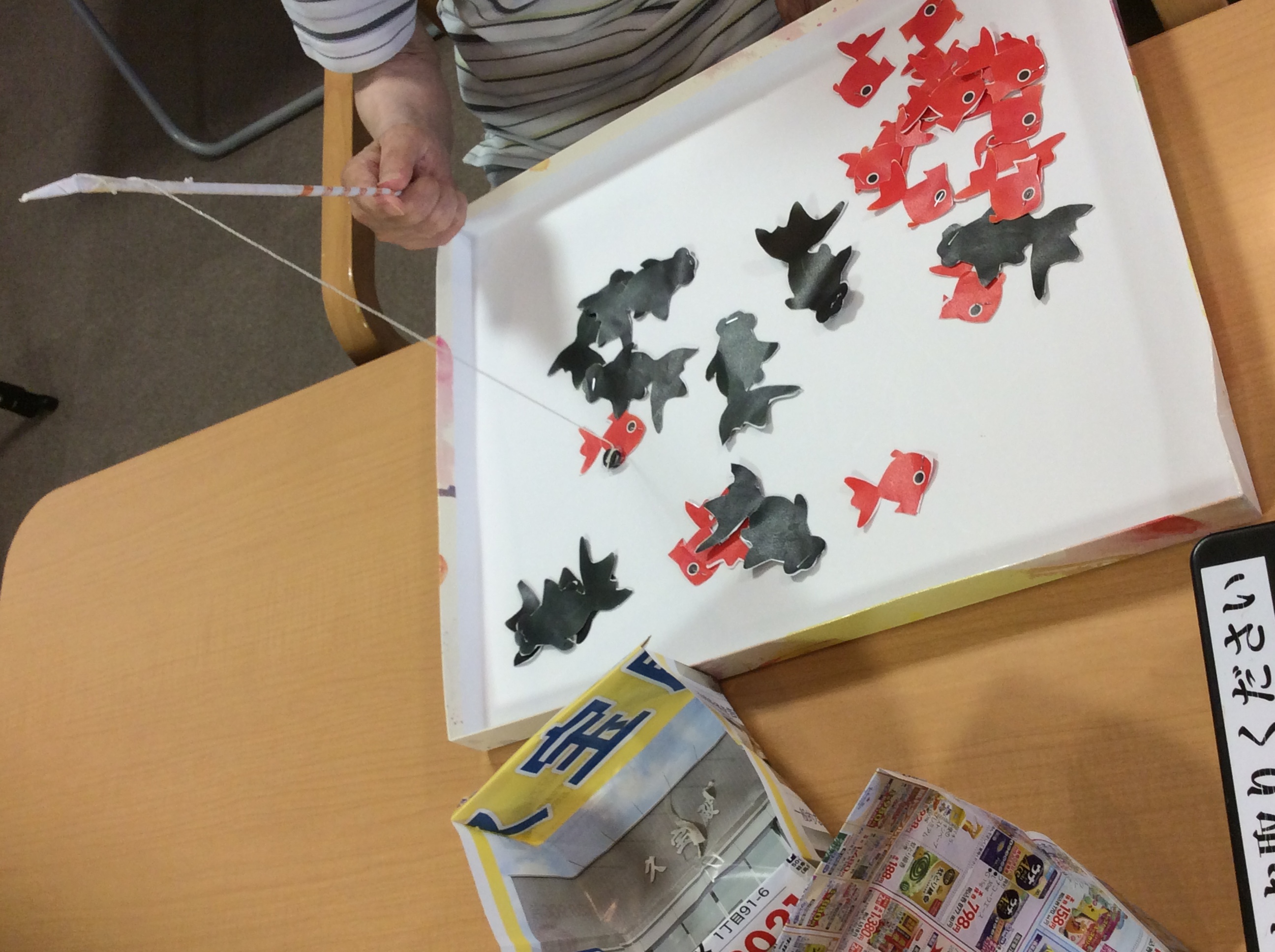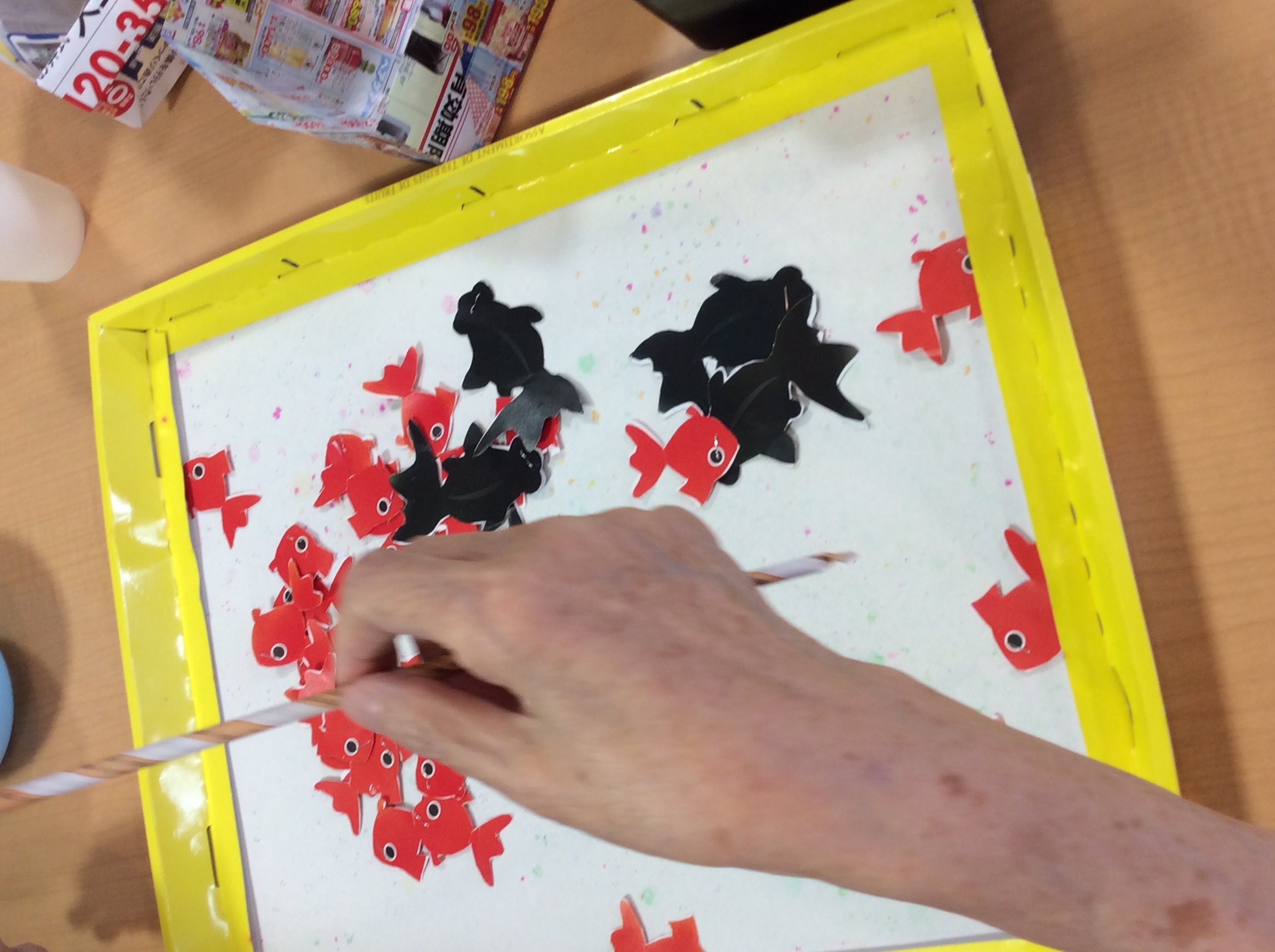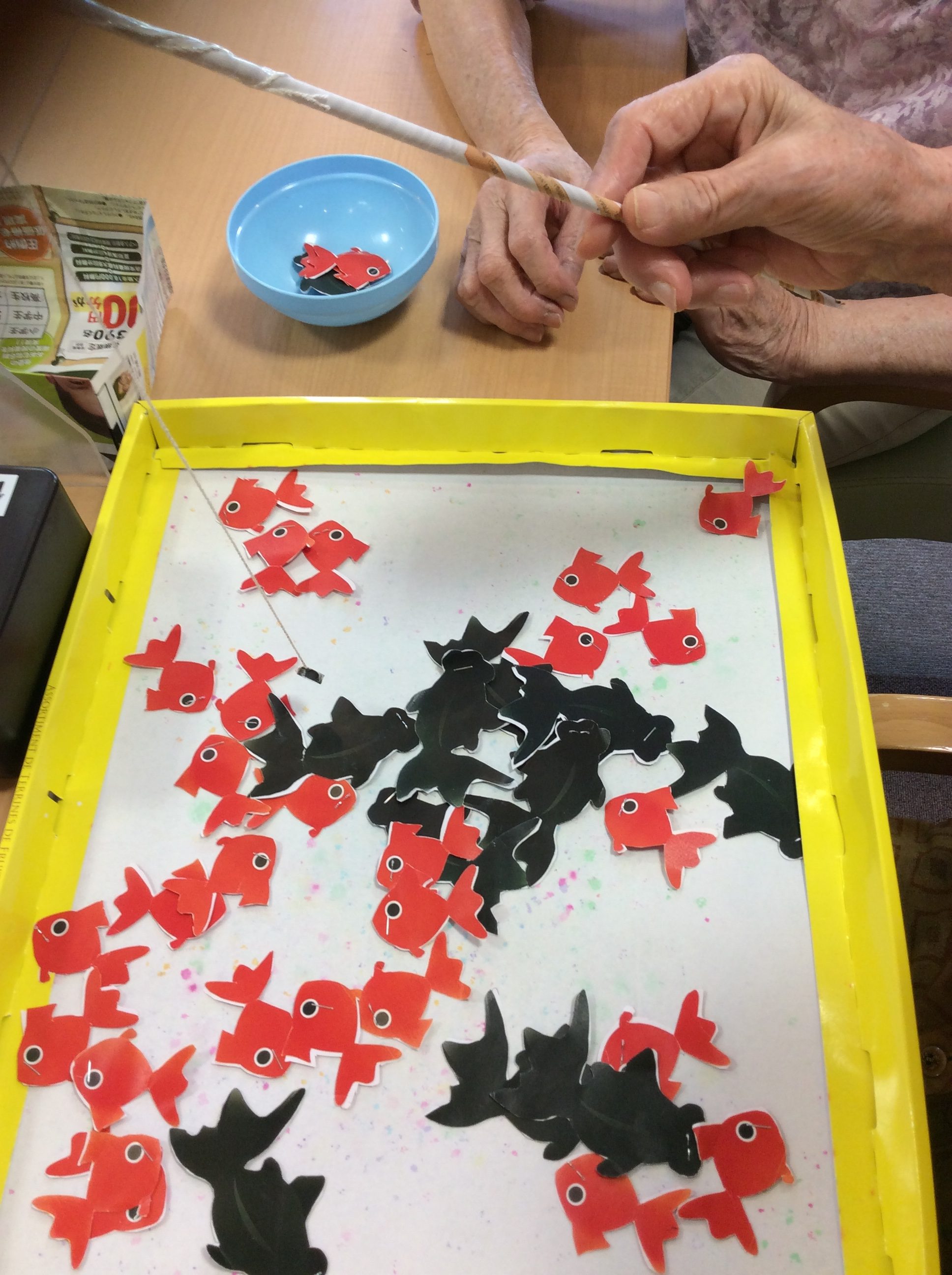 デイでは、夏祭りを思い出していただこうと金魚吊りを行いました(#^^#)