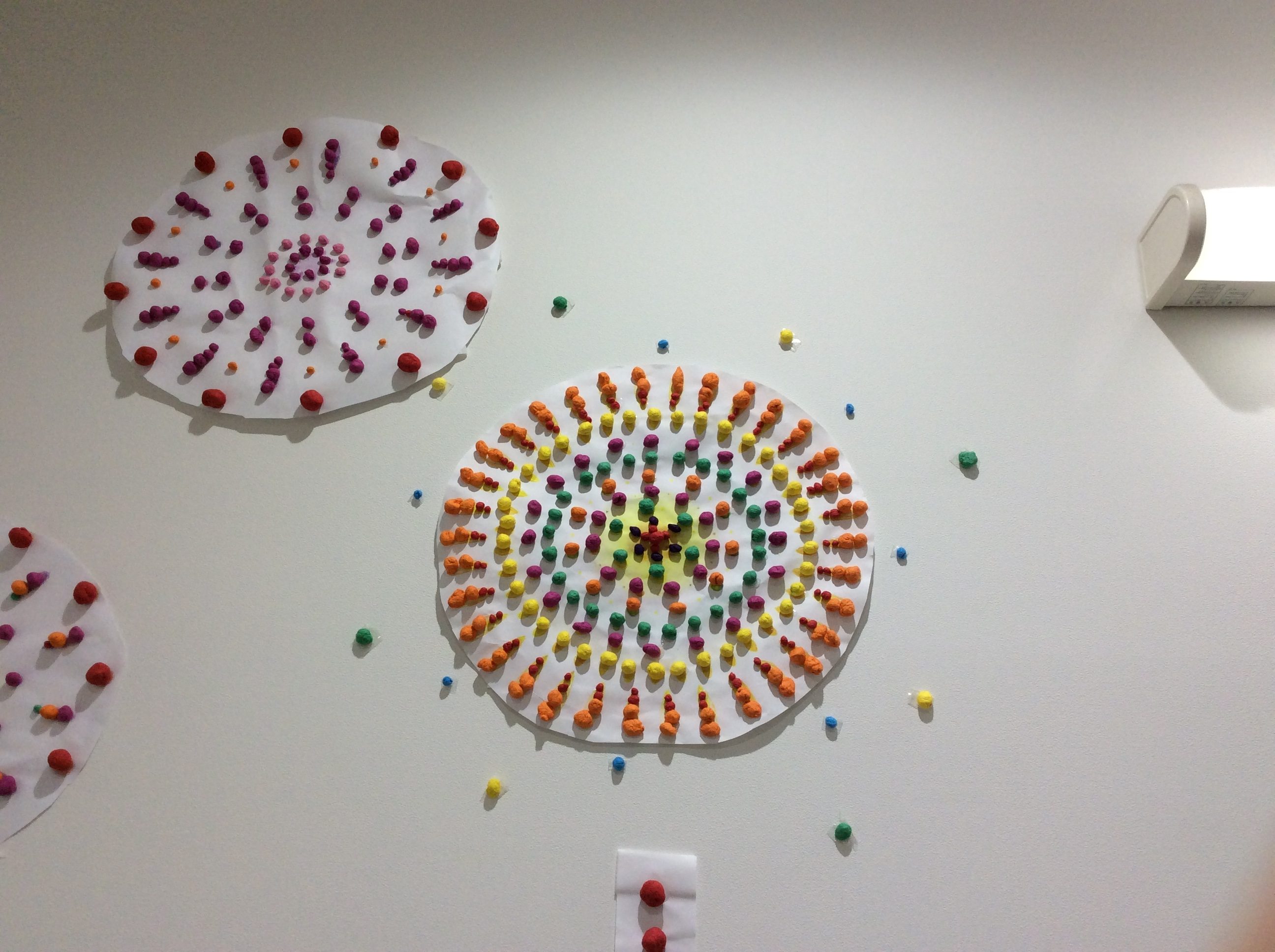 色とりどりの小さなお豆を沢山作っていただき、用紙に貼りました(#^^#)