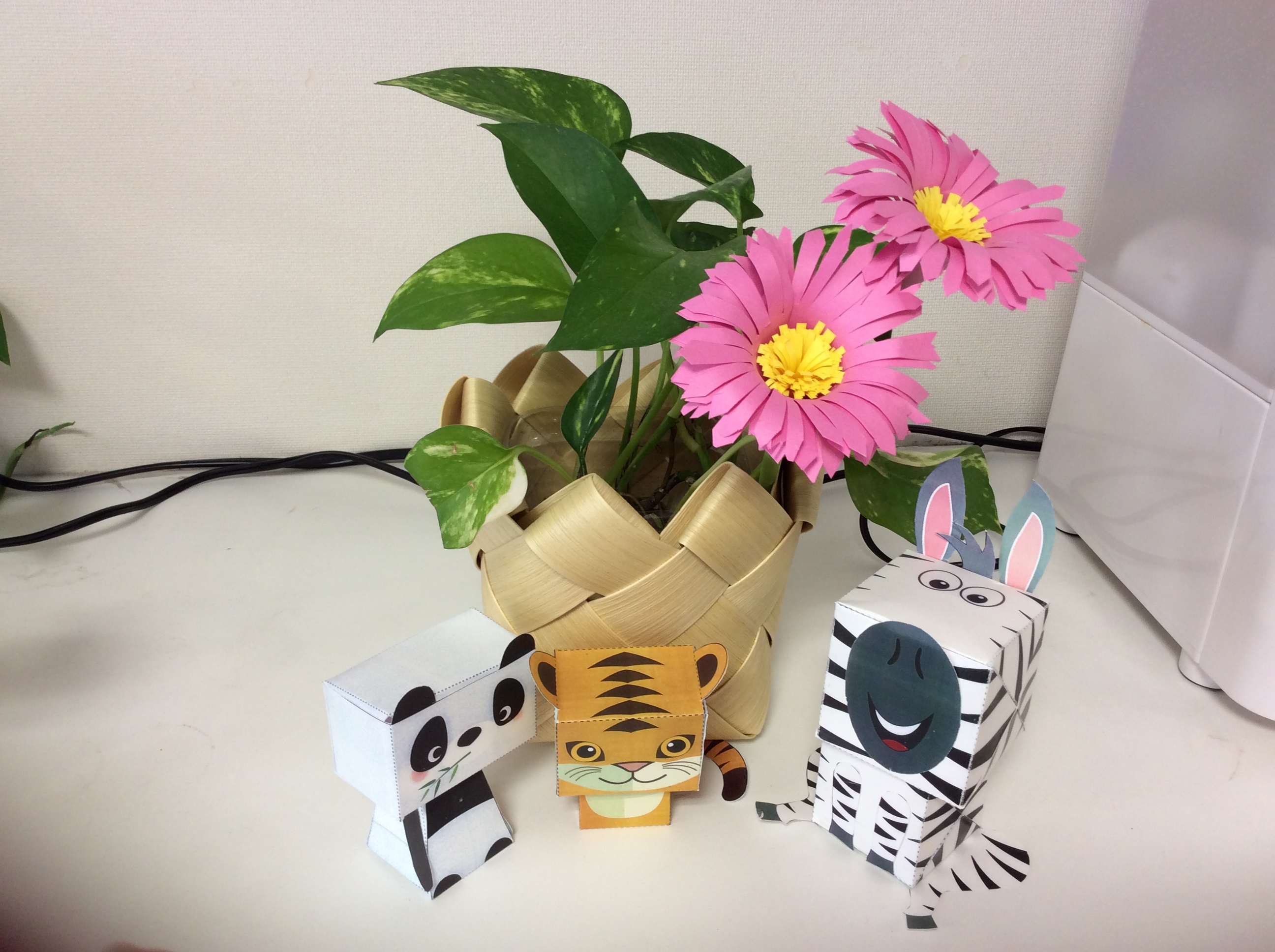 ポトスの隣のガーベラは画用紙での手作りです(*^^*)