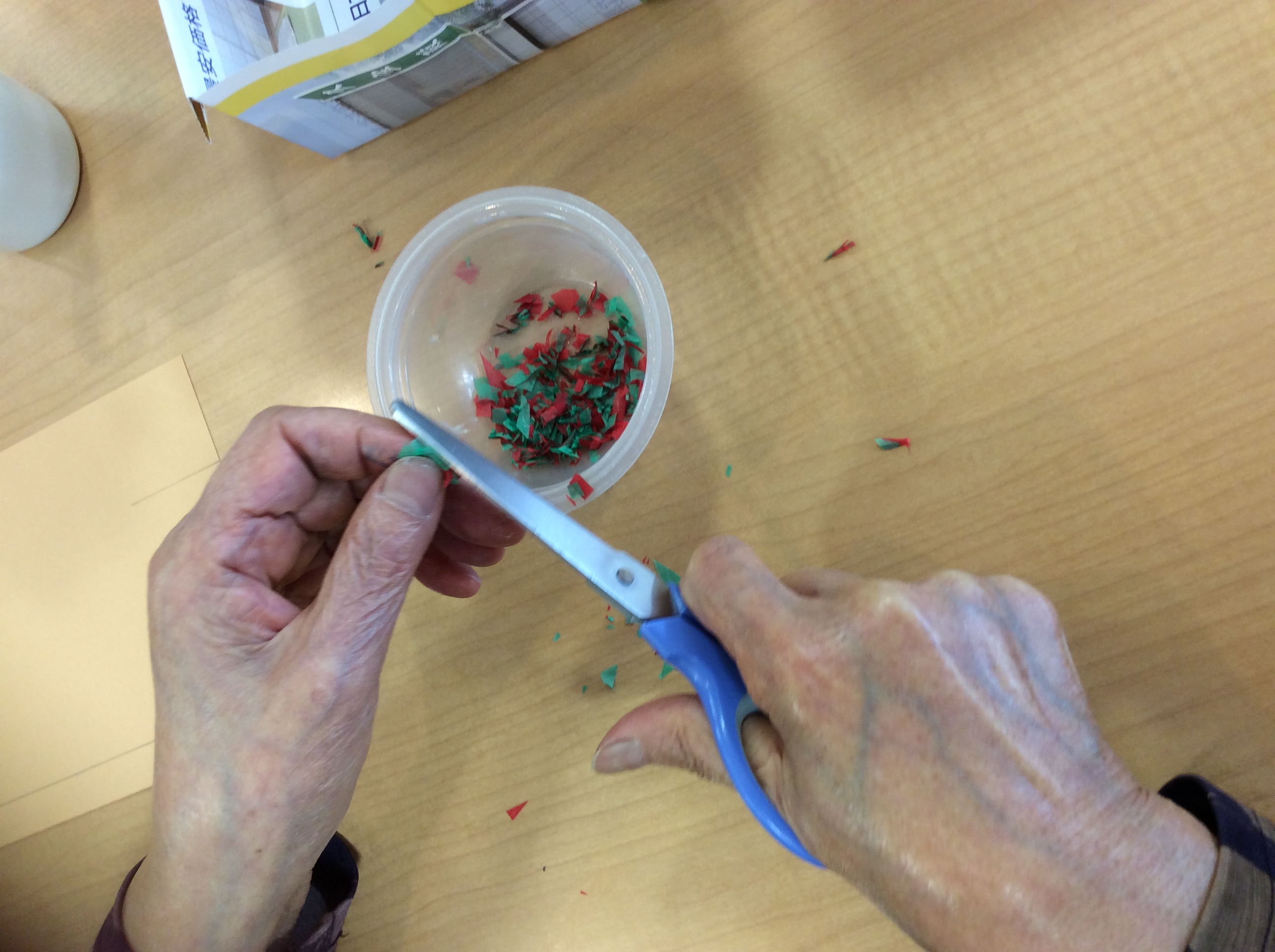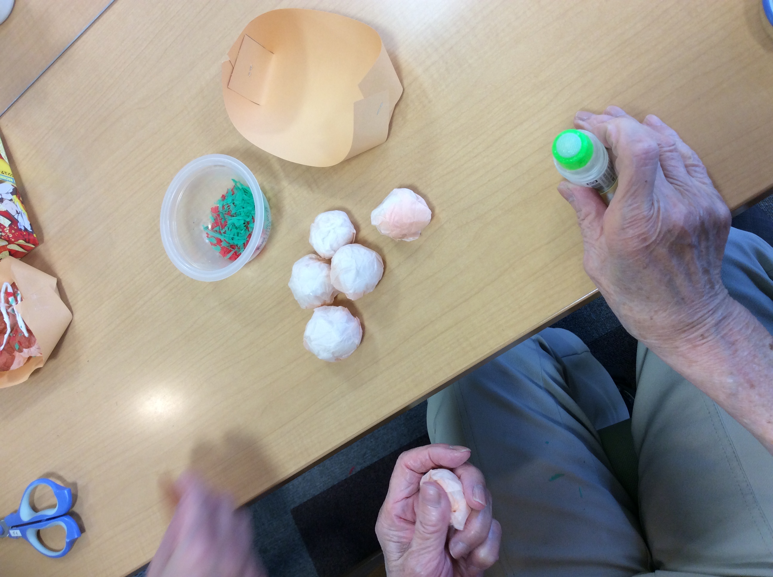 お花紙を細かく切ったり、丸めて包んで(*^^*)