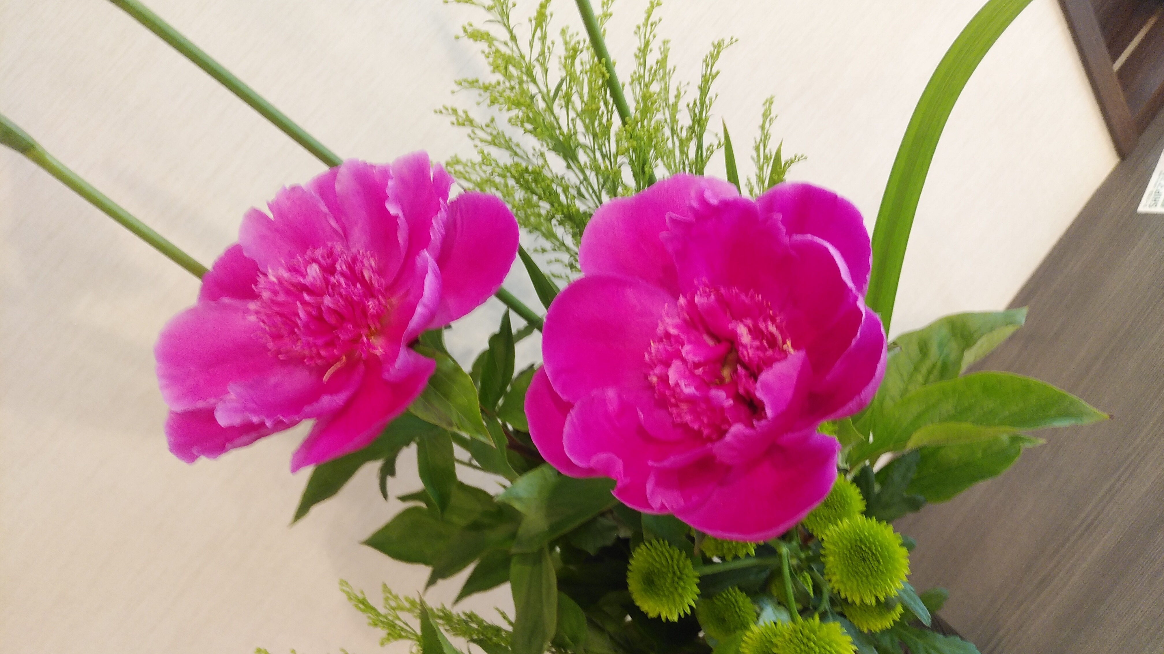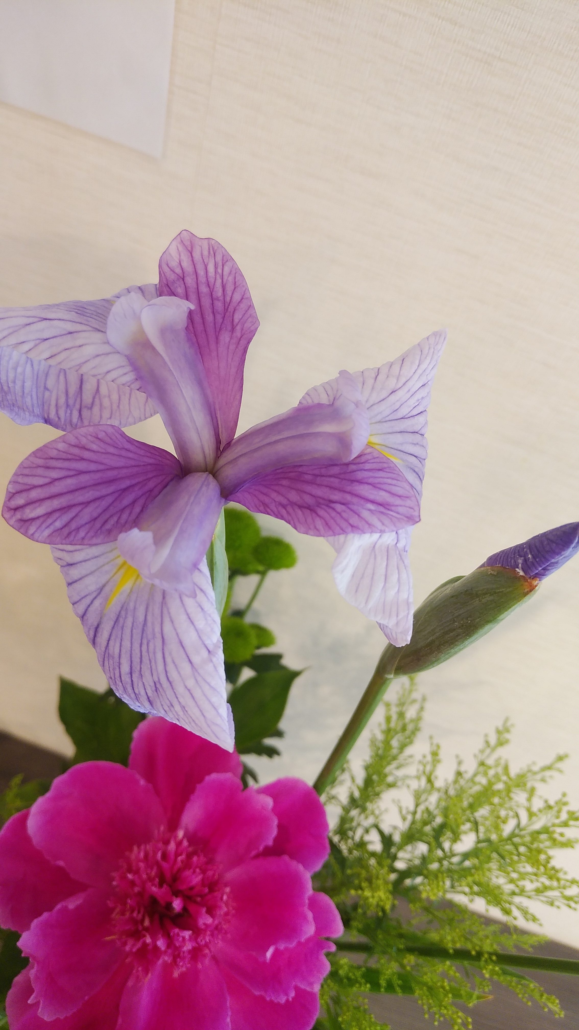 玄関に生けていた、しゃくやくと菖蒲が咲きました。