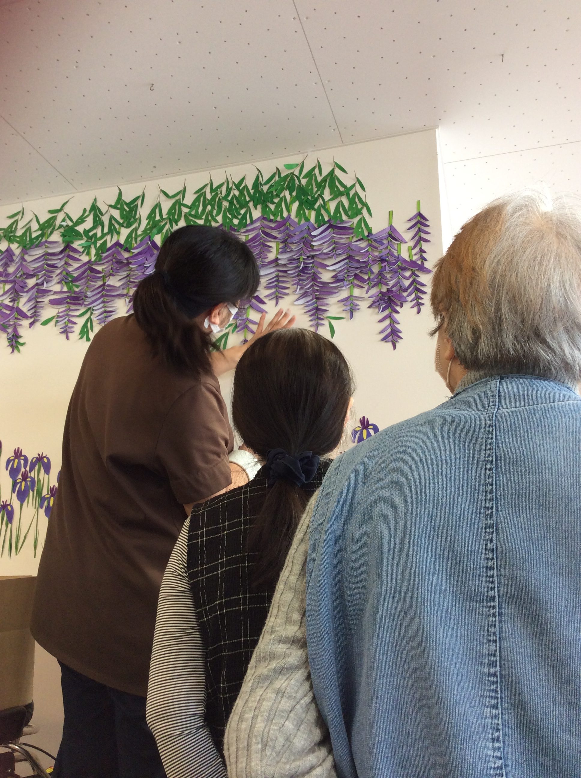 壁にスタッフが貼り付けていると、利用者様が『わぁ~』と集まってきてくれました(^^)