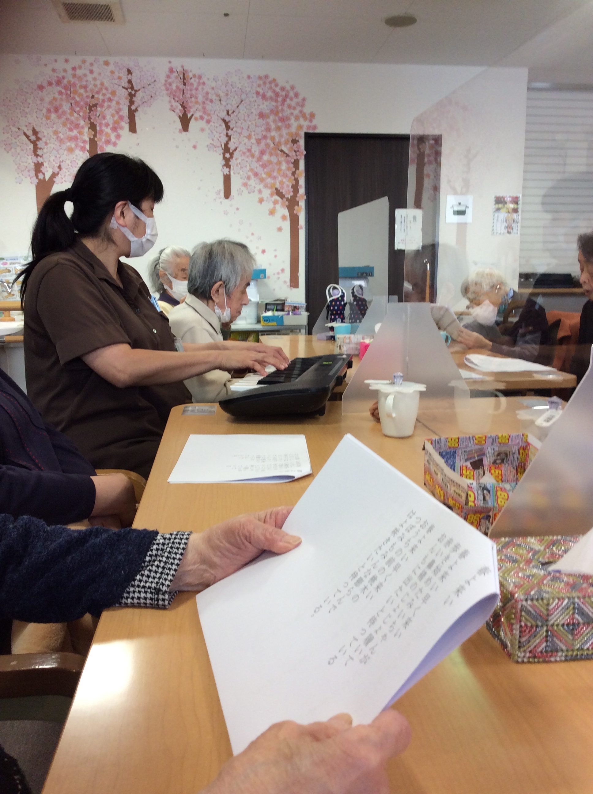 スタッフの生演奏で、懐かしい曲や春の歌をみんなで歌いました♪