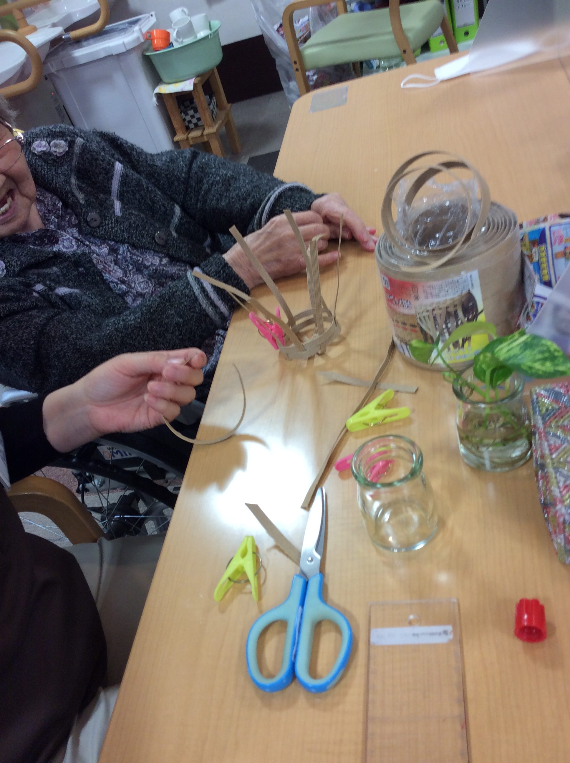 さすがにすぐできるものではなかった為、早く仕上がるかごを一緒に作ることにしました。