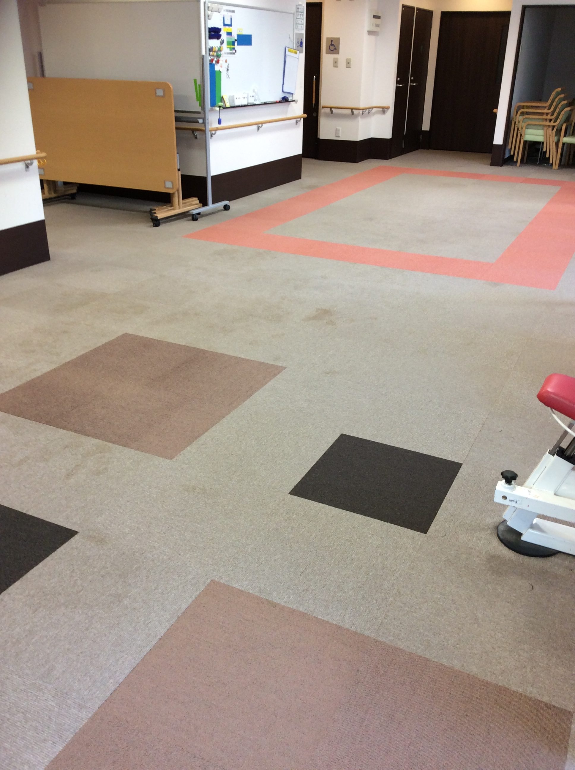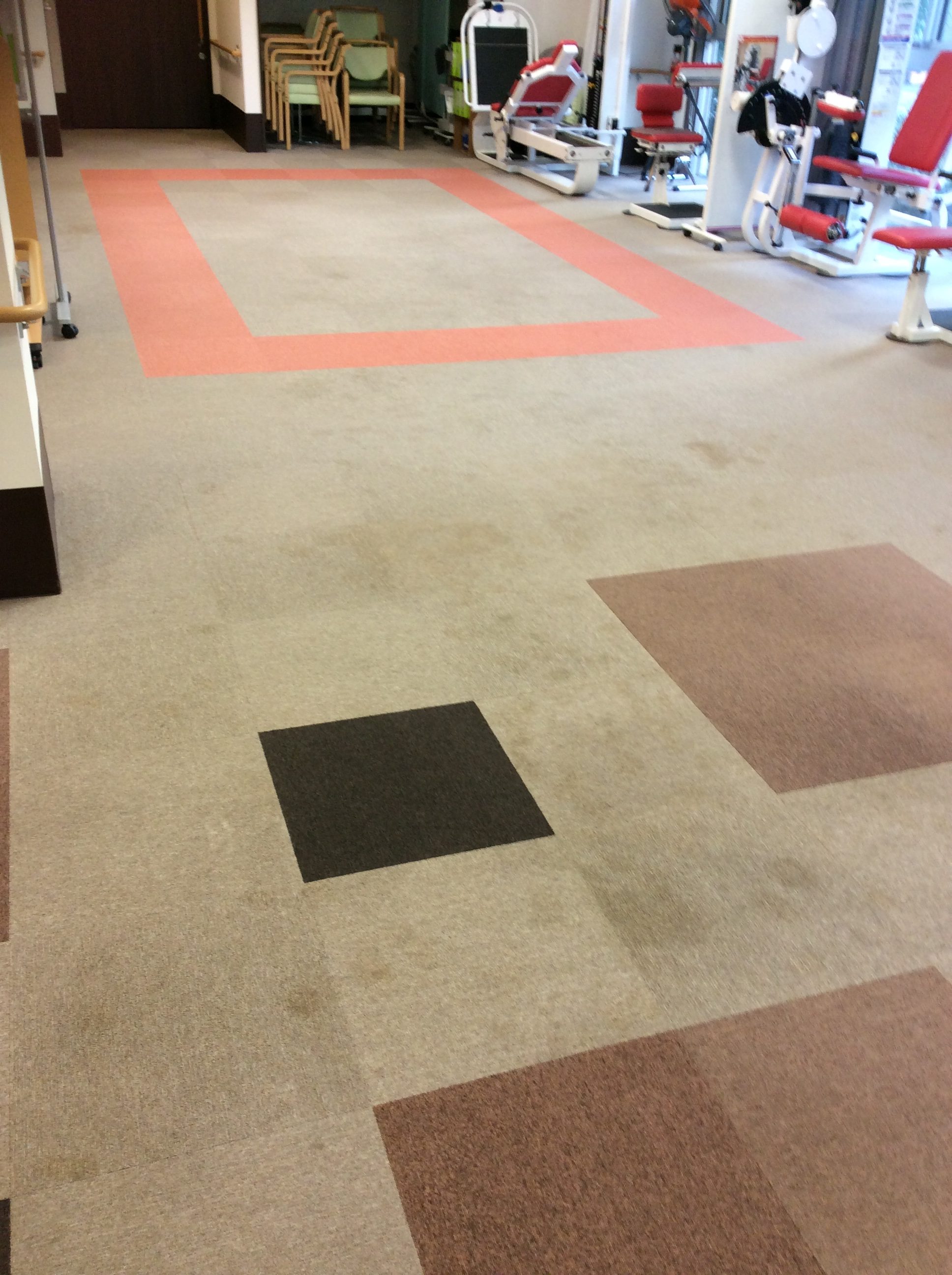 デイサービスのフロアじゅうたんに汚れが蓄積していました。