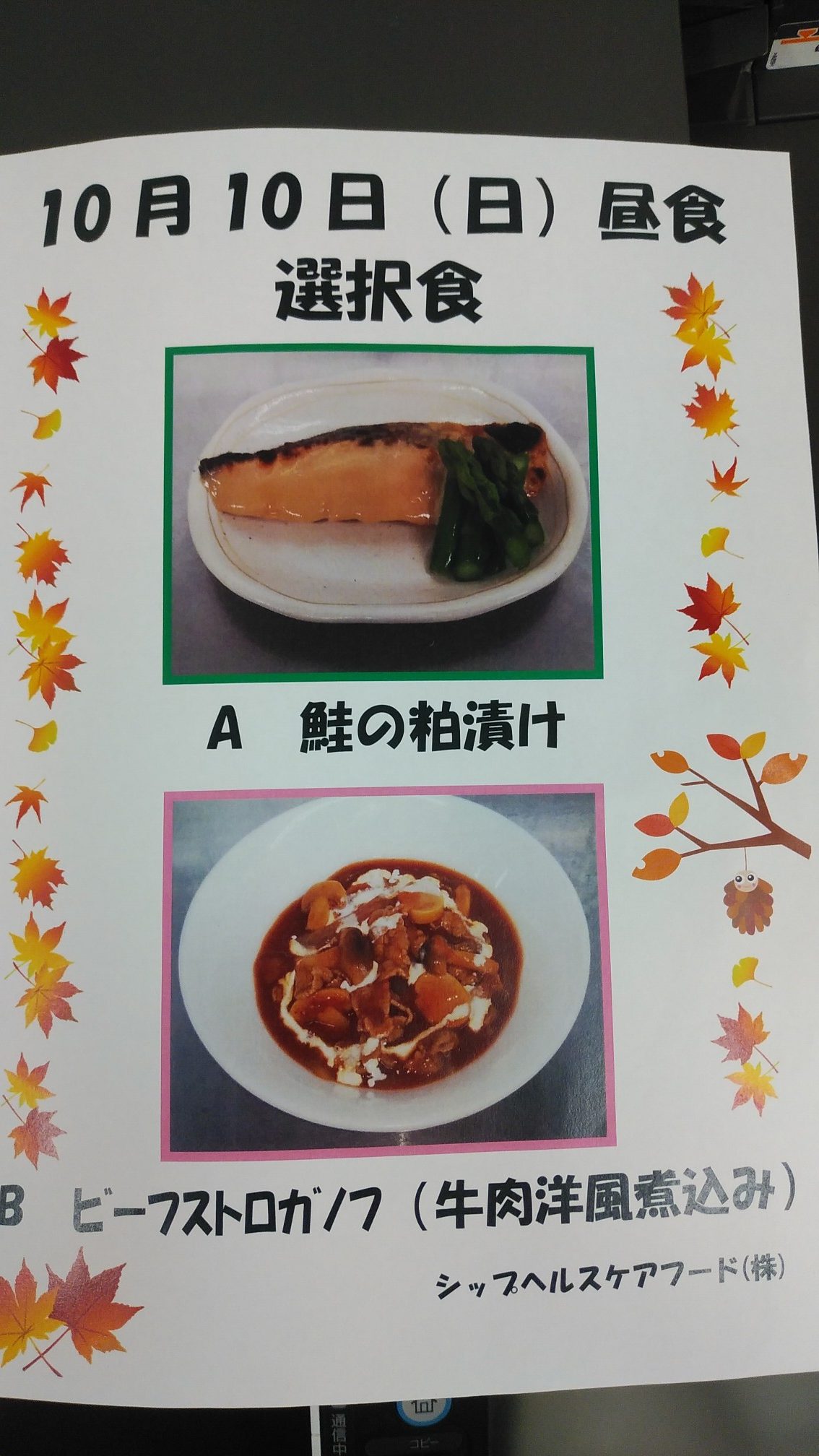 明日の昼食はお好きな方をお選びいただける献立です。