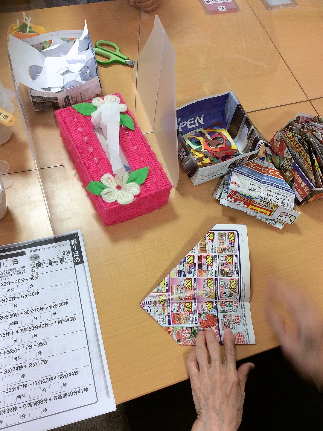 指先と頭を使いチラシをゴミ箱にしていきます。