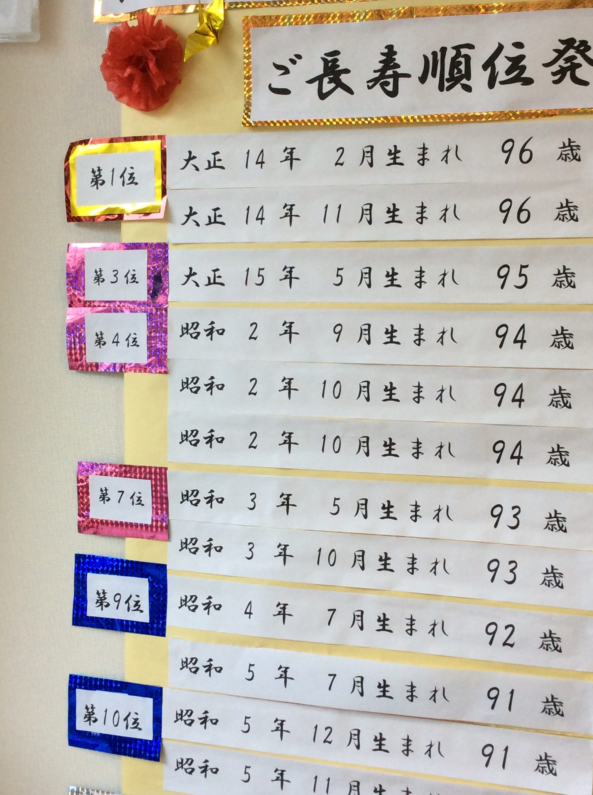 楽リハデイサービスセンター東大阪のご長寿ランキングを発表させて頂きました。