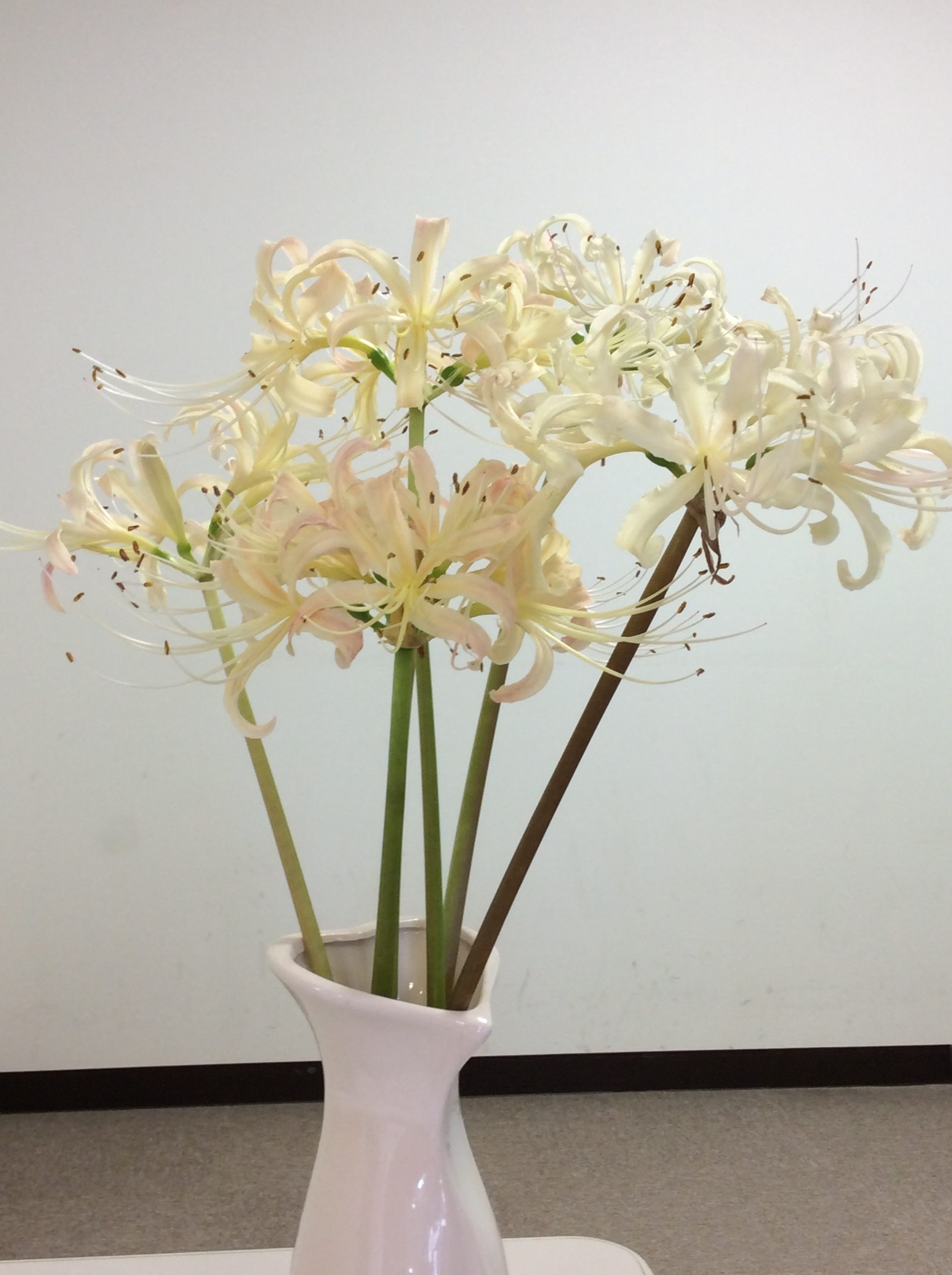 利用者様が珍しい色の彼岸花をデイに持ってきてくださいました。