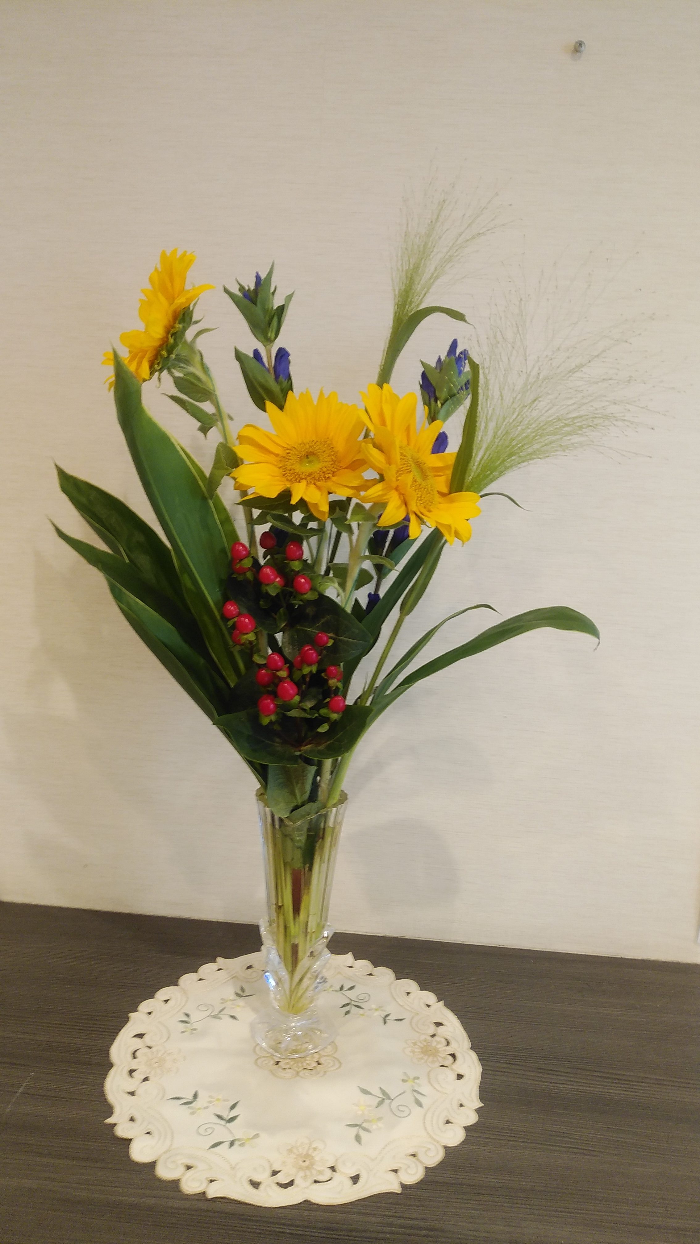 皆さんと制作した大きな向日葵が完成し、壁画になりました(*^^*)