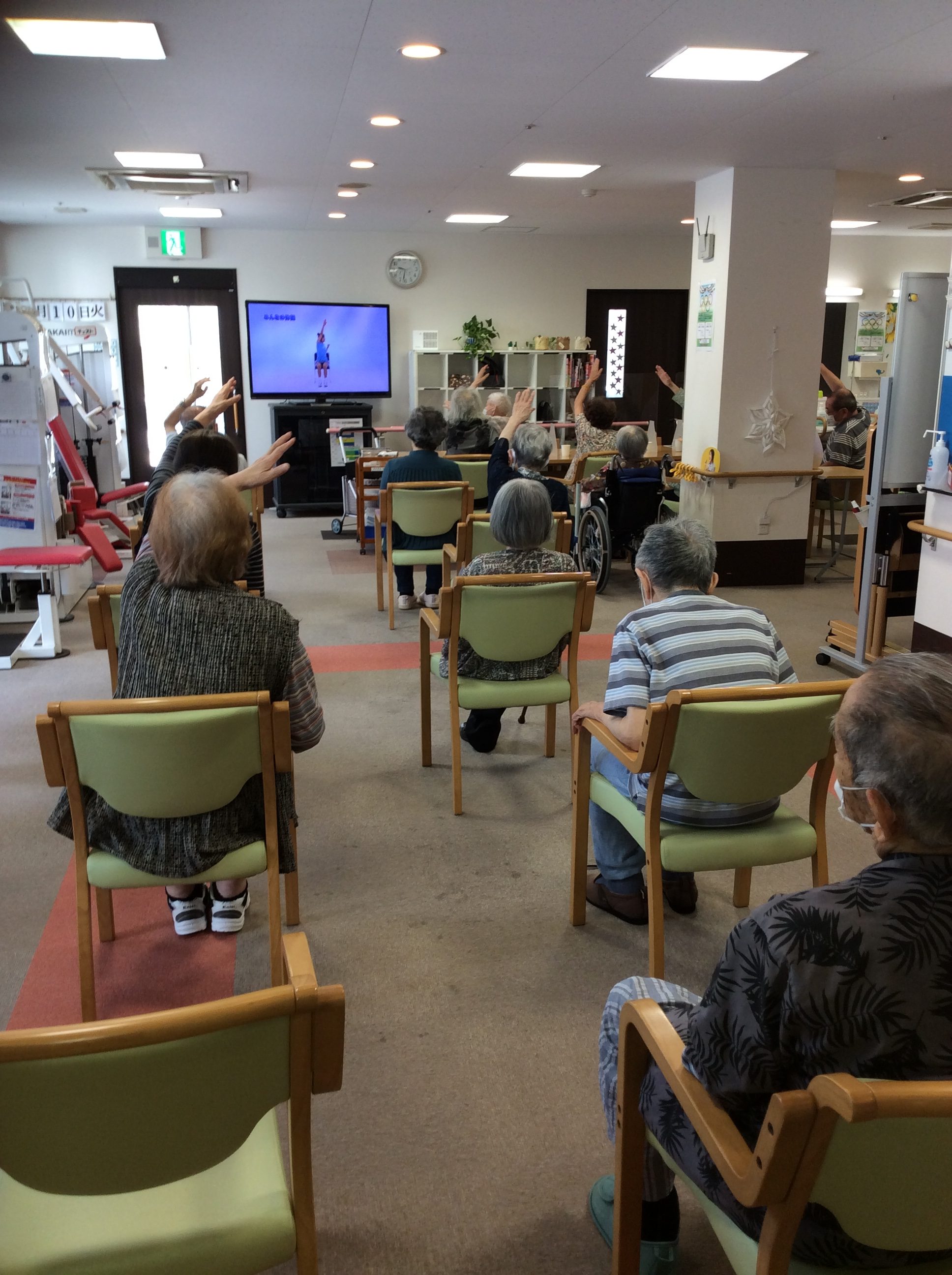 水分補給とバイタルチェックが終わり、次はラジオ体操です。