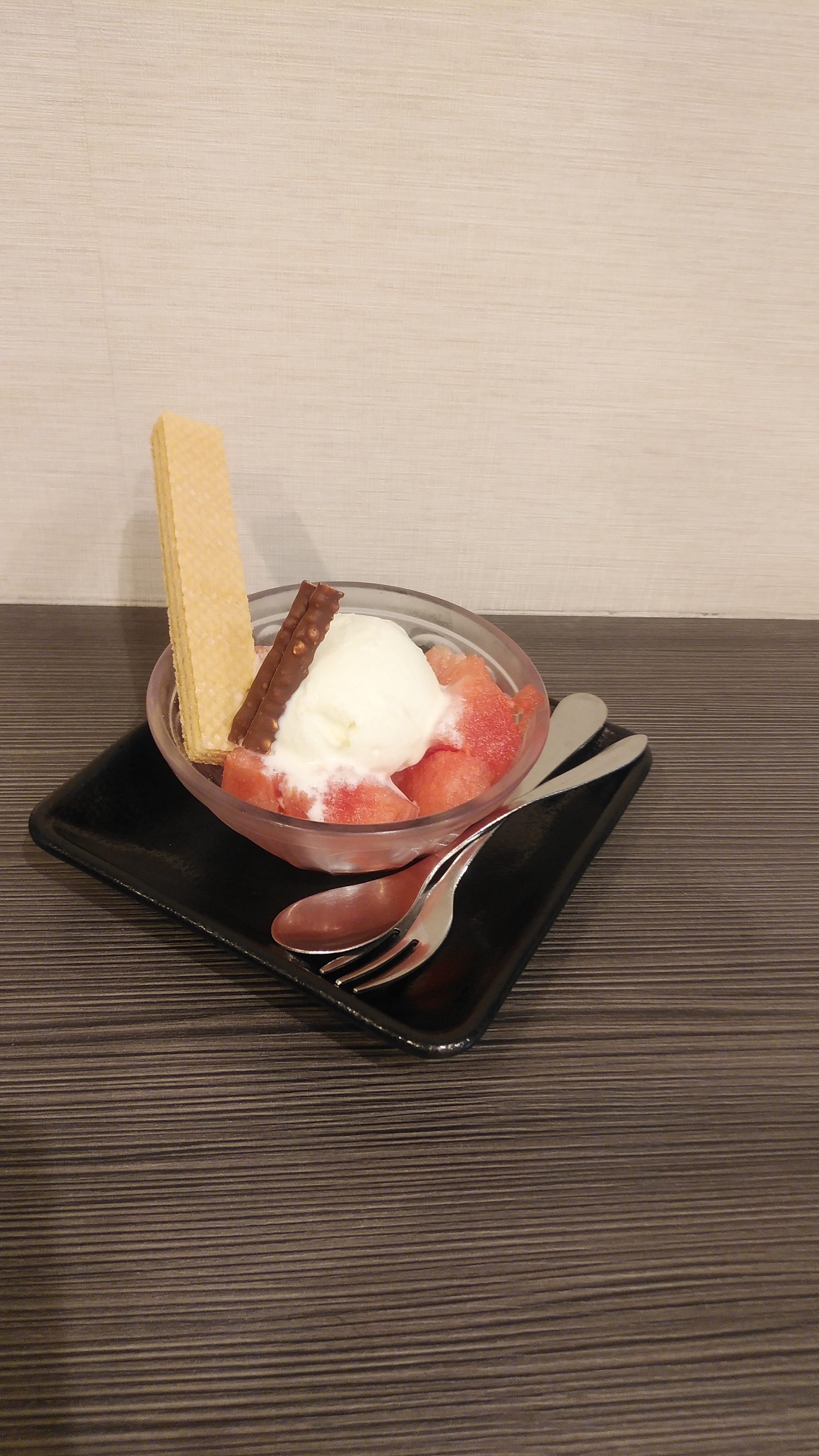 夕食のデザートにスイカパフェを召しあがっていただく予定です。
