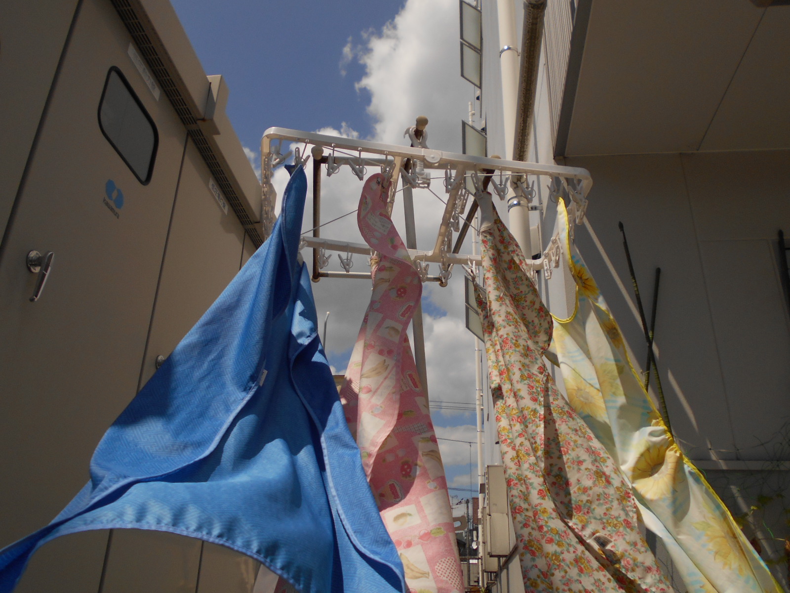 お昼に洗ったエプロンは風になびき、もう乾いてました(^o^)