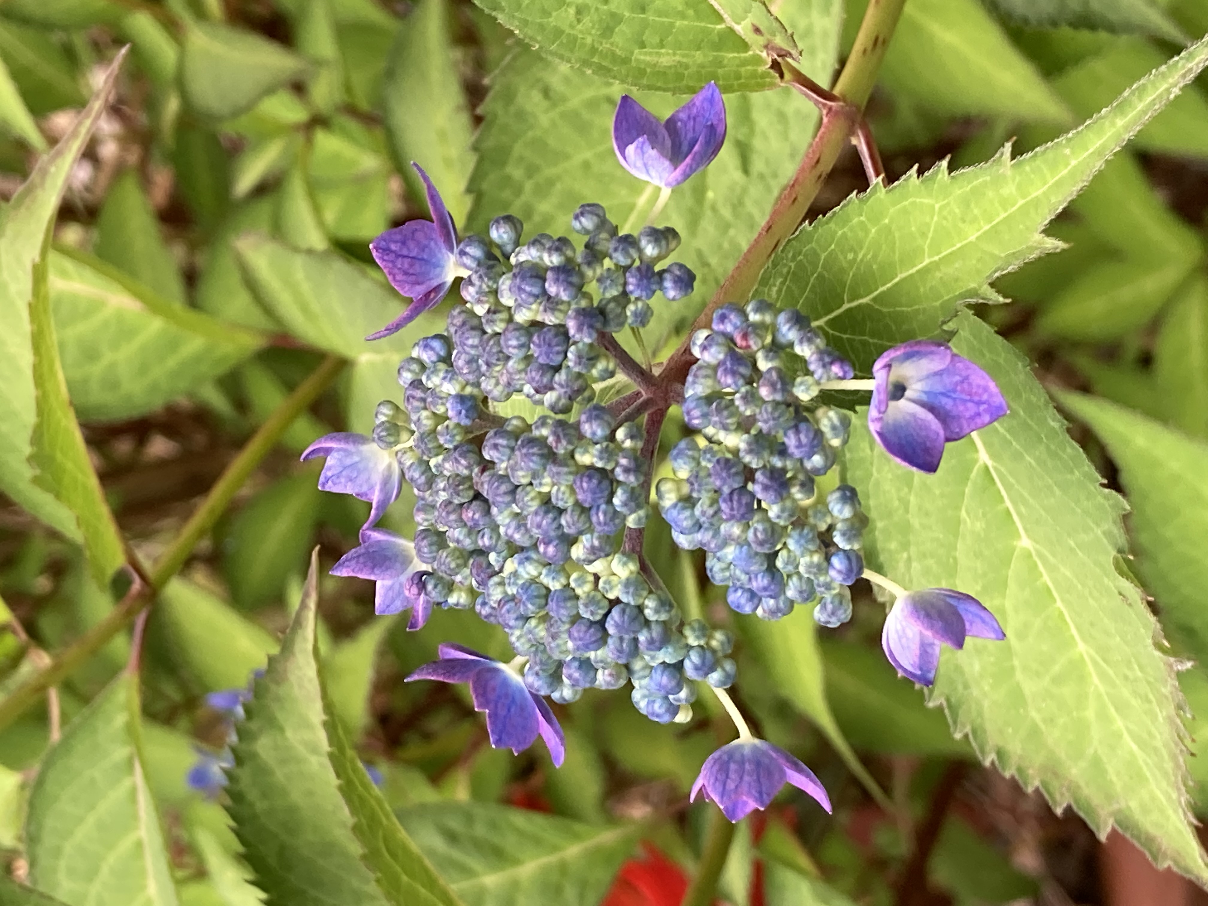 山アジサイです。雨で綺麗に色づいてきました。