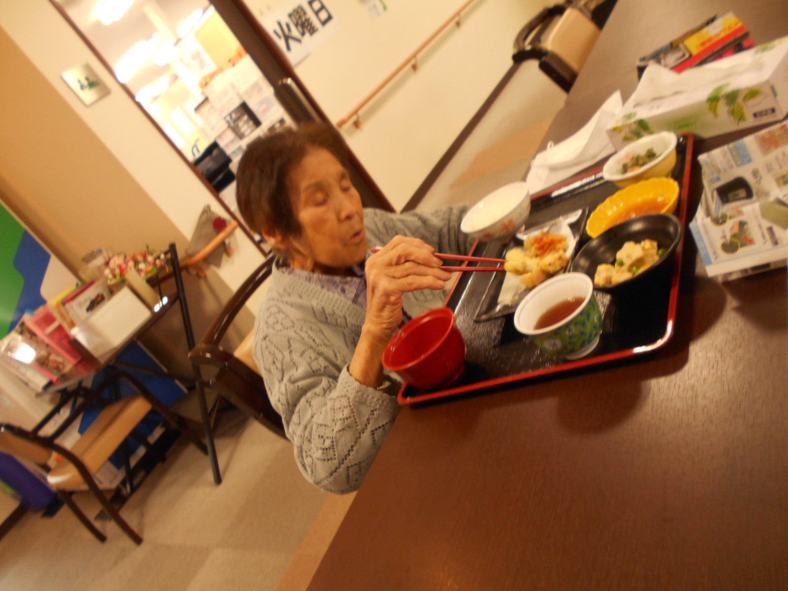 朝食後のエプロンを畳んでいると、手伝ってくれたMさん。