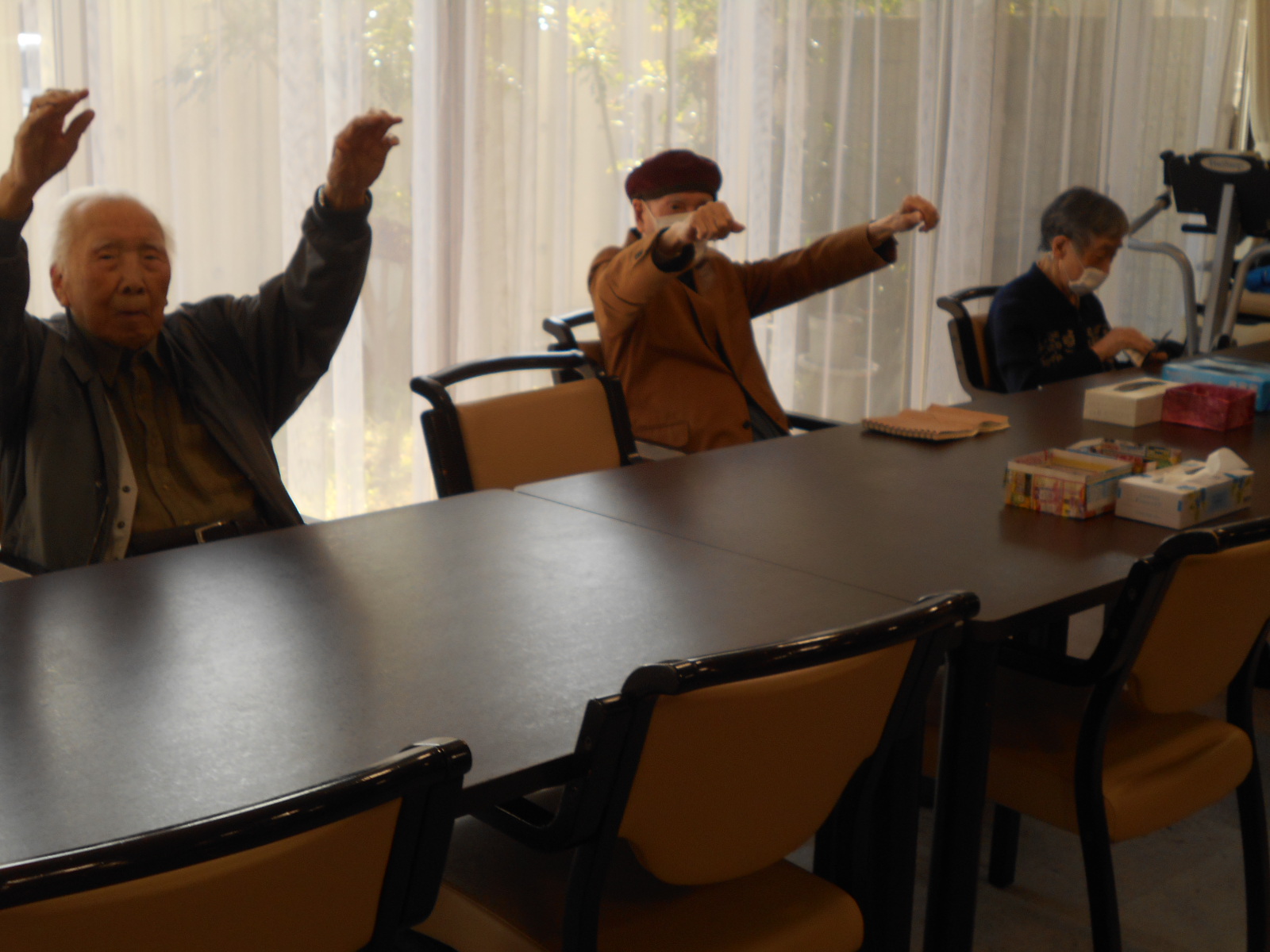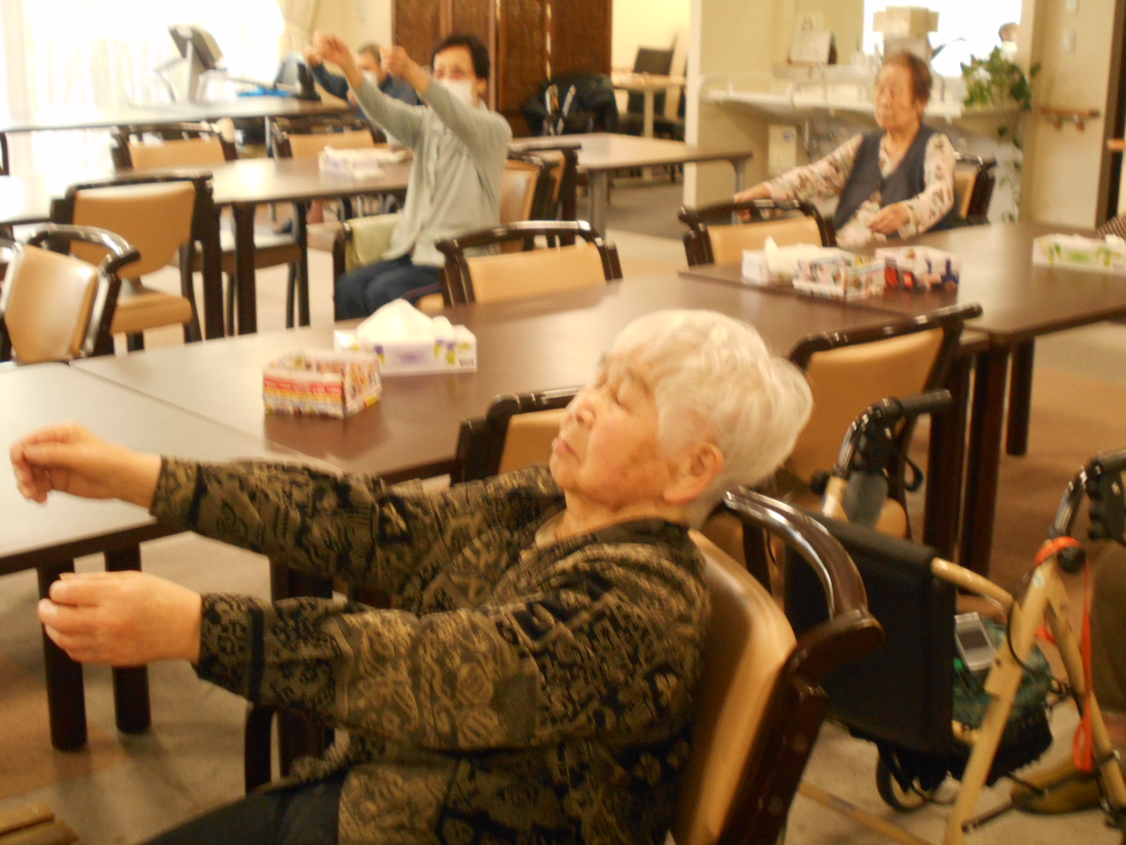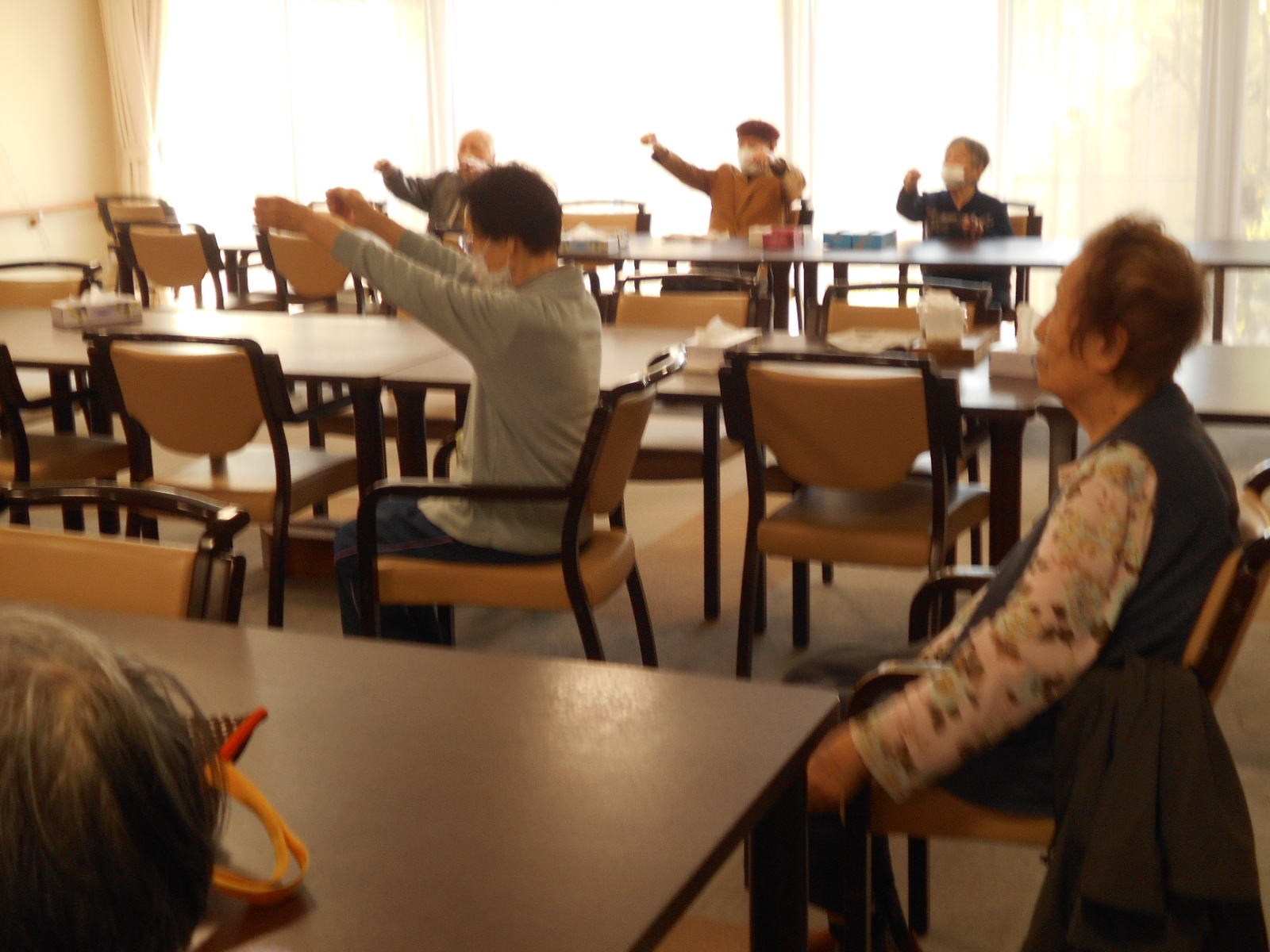 日曜日でデイサービスもお休みです。午後の「いきいき百歳体操」にはいつもよりもたくさん来てくれました。
