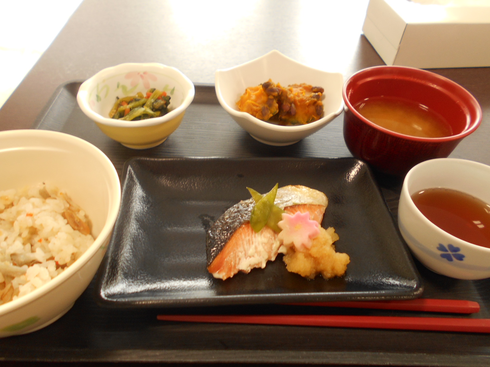 ちなみに今日の昼食は、魚の塩焼きと炊き込みごはん、かぼちゃの小倉煮、青菜のおかか和えでした。