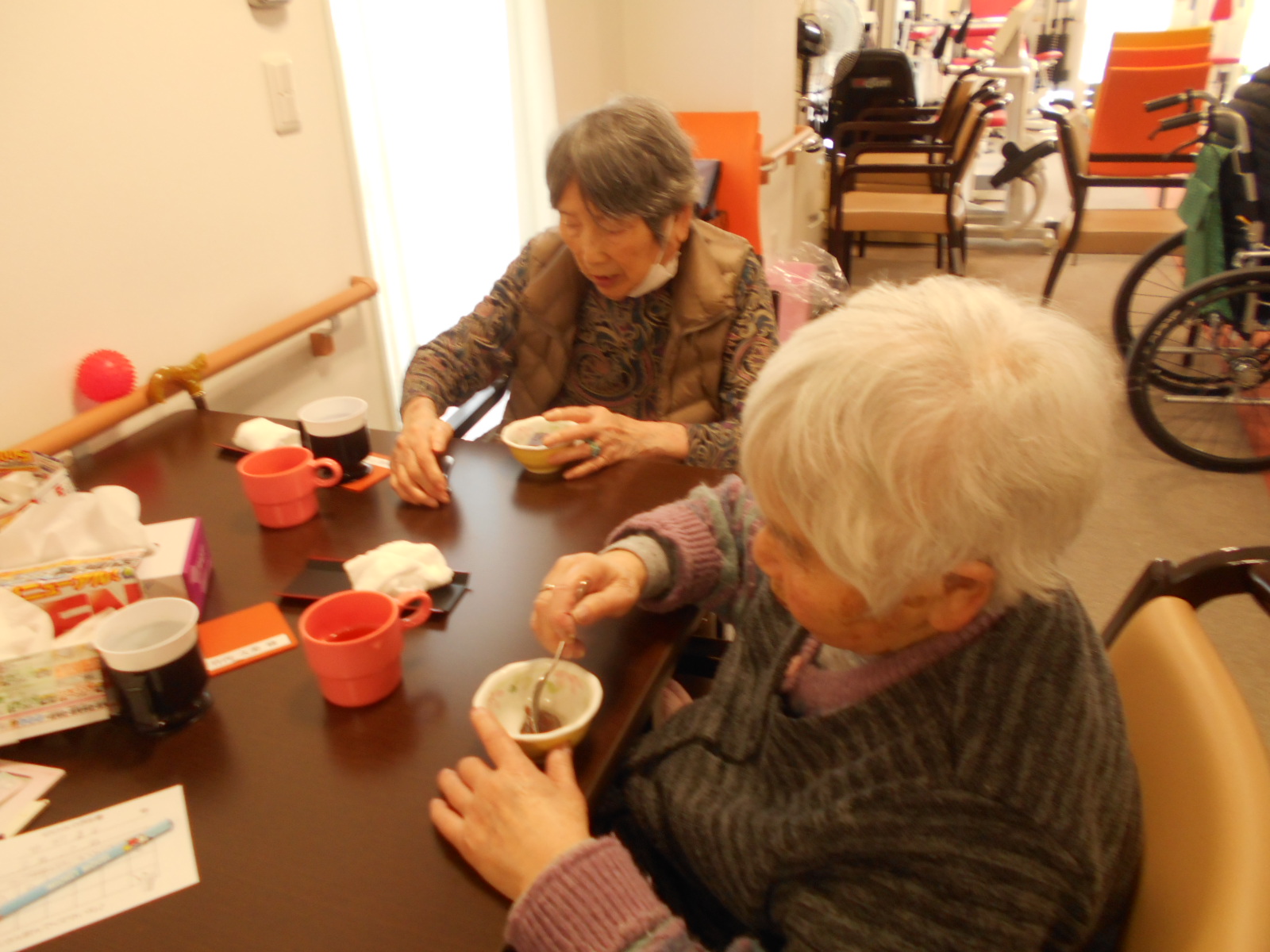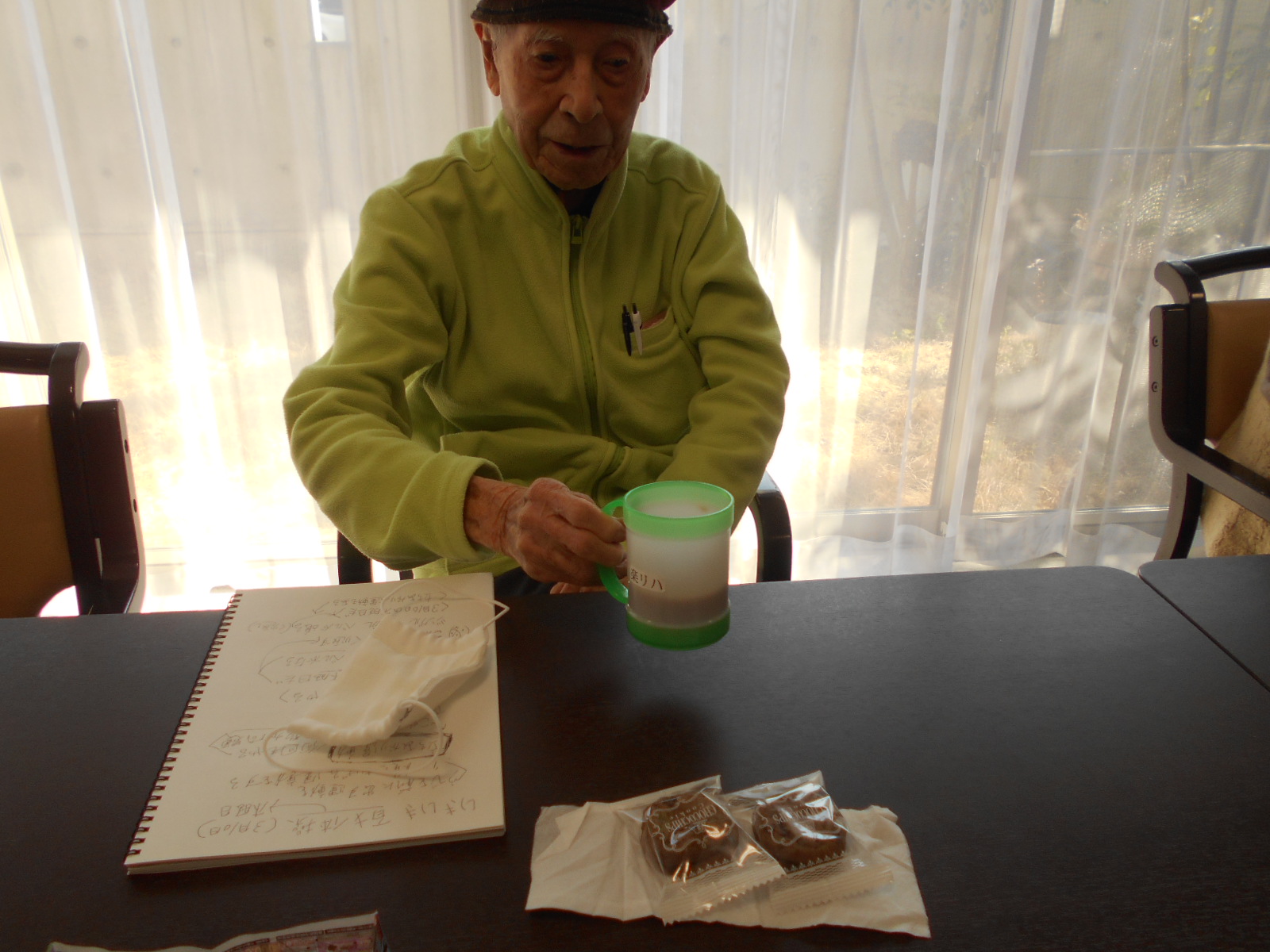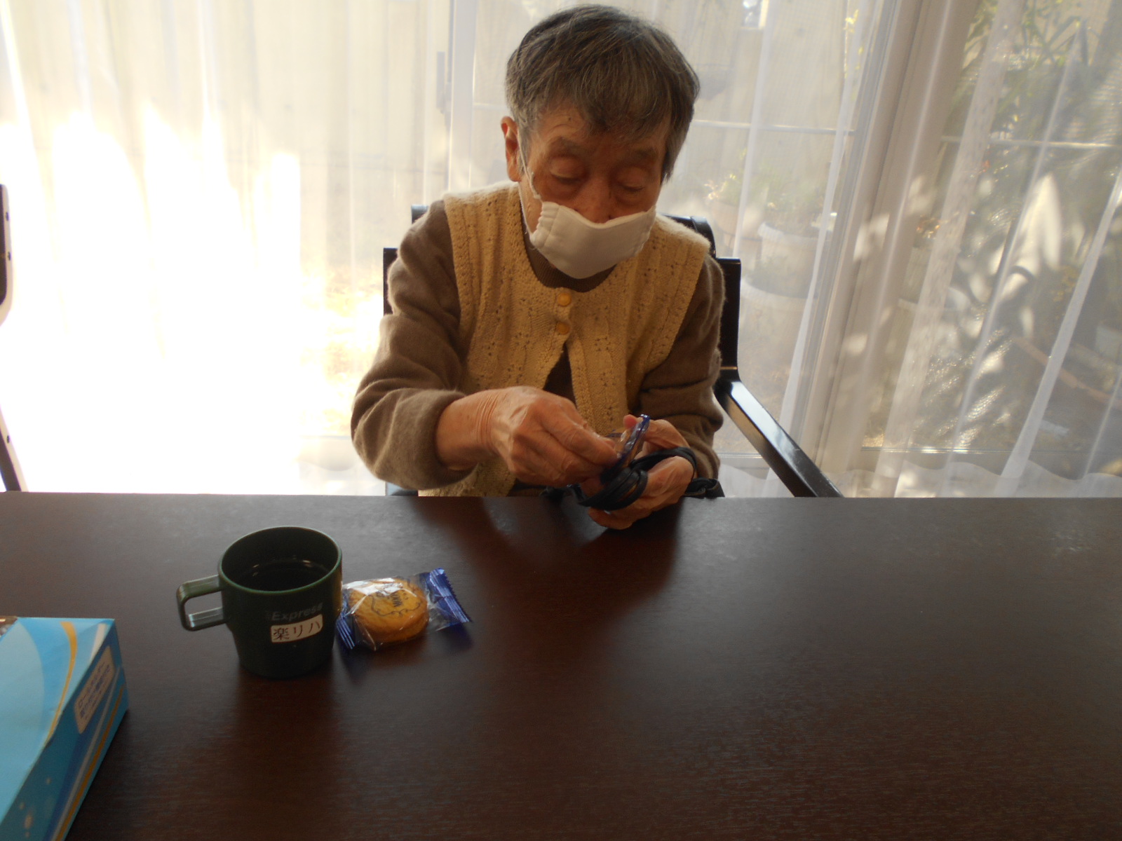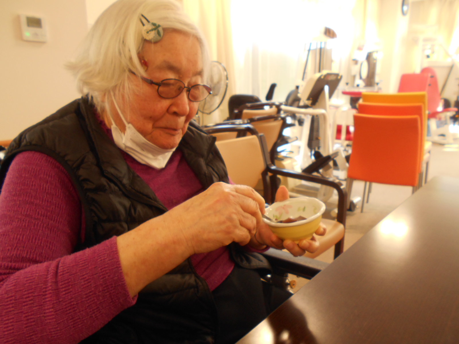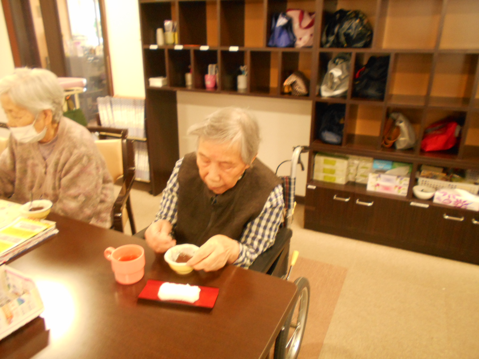 今日のデイサービスのおやつは、”水ようかん”でした。「おいしいで」と声が聞こえた。