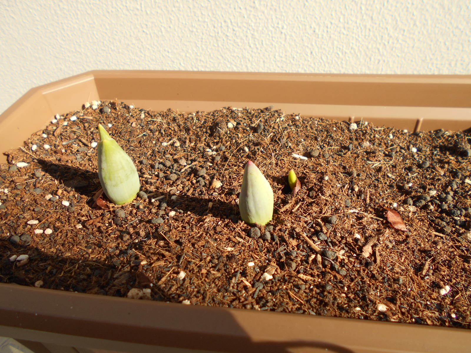 久しぶりにチューリップを見たら、随分と大きくなり、3つ目の芽が出てきていました。成長が楽しみです。