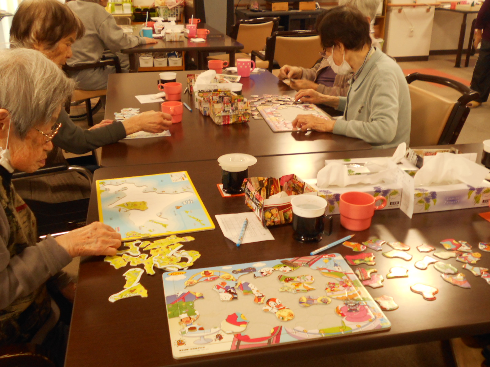 塗り絵、間違いさがし、パズル)入浴等を行っています。