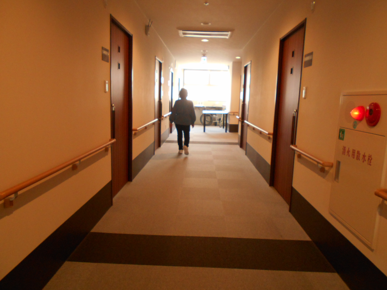 「今日はデイが休みだから、廊下を歩いてるのよ」とMさん。